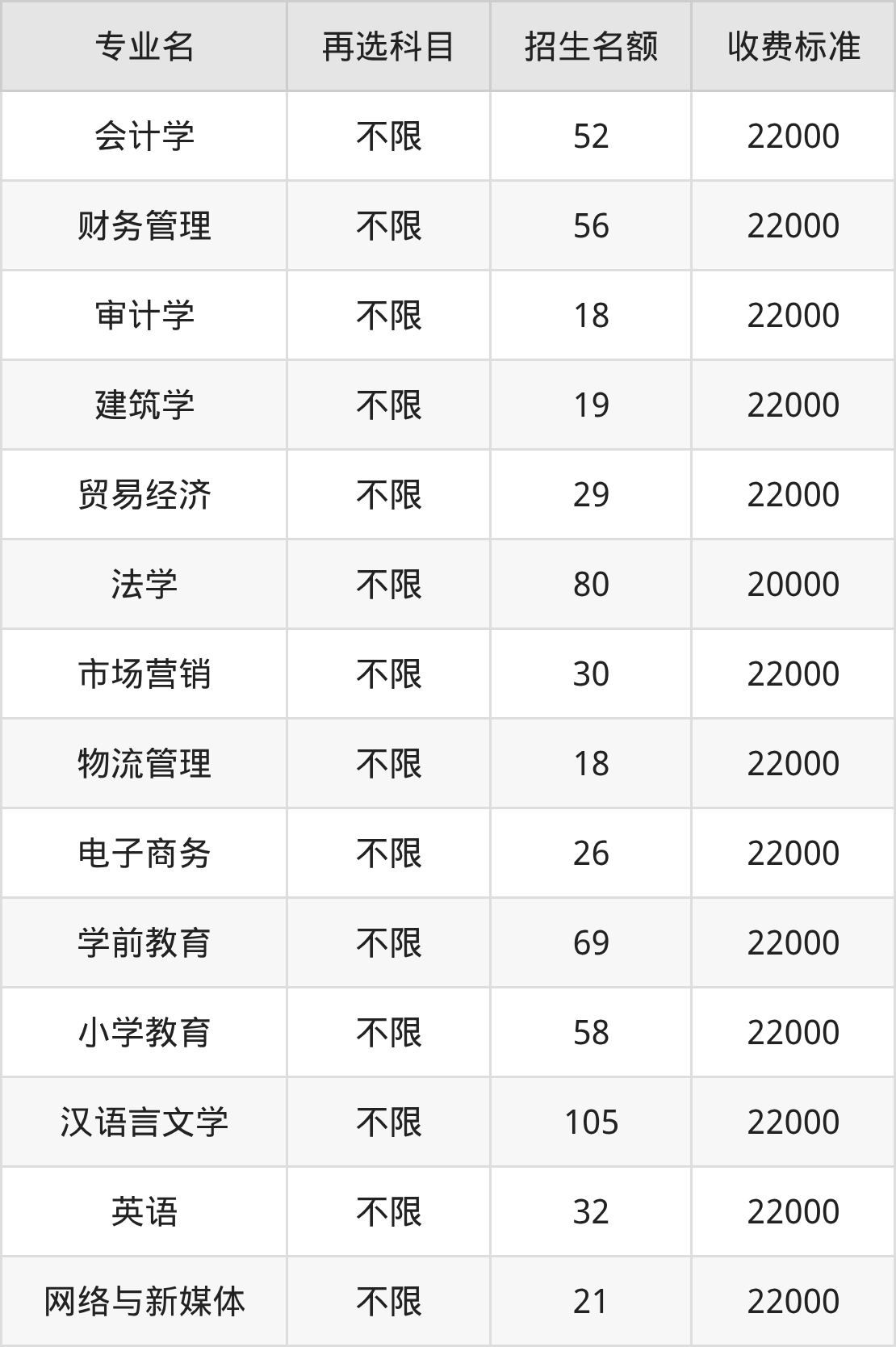 10.物流管理:学费是22000元