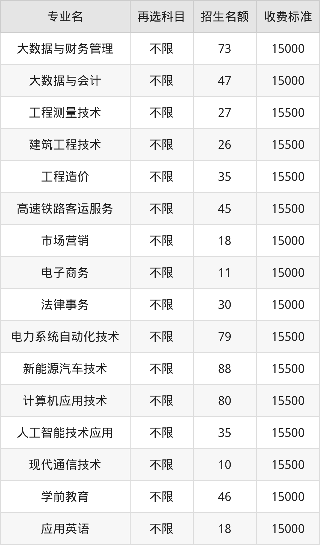 | 高职专科批 | 物理 | 法律事务 | 15 |