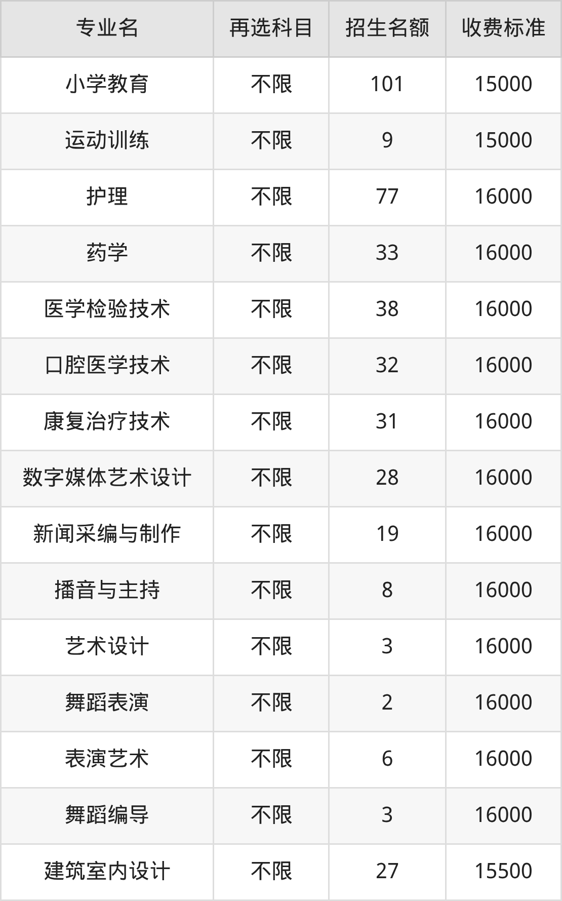 | 高职专科批 | 历史 | 运动训练 | 9 |