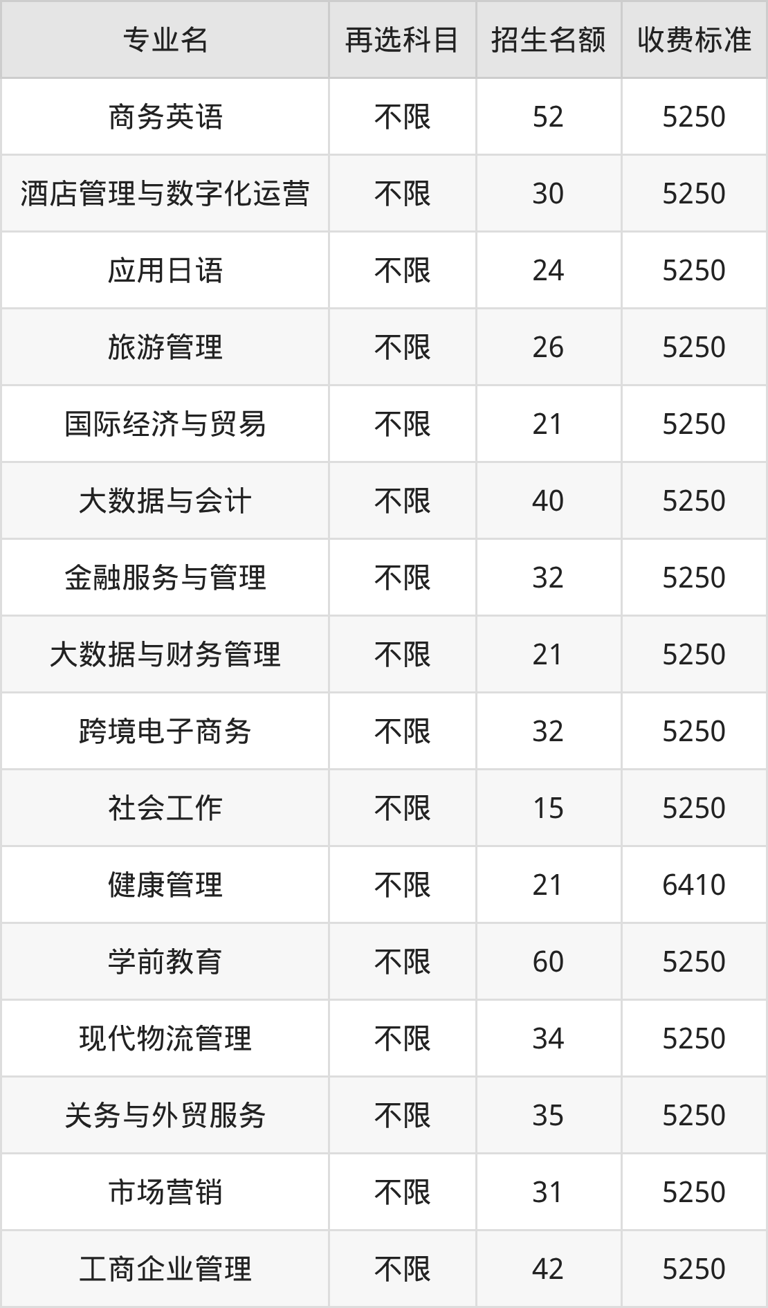 | 专科高职批 | 历史 | 酒店管理与数字化运营 | 30 |