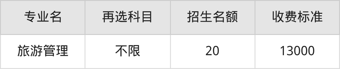 | 专科高职批 | 物理 | 旅游管理 | 20 |