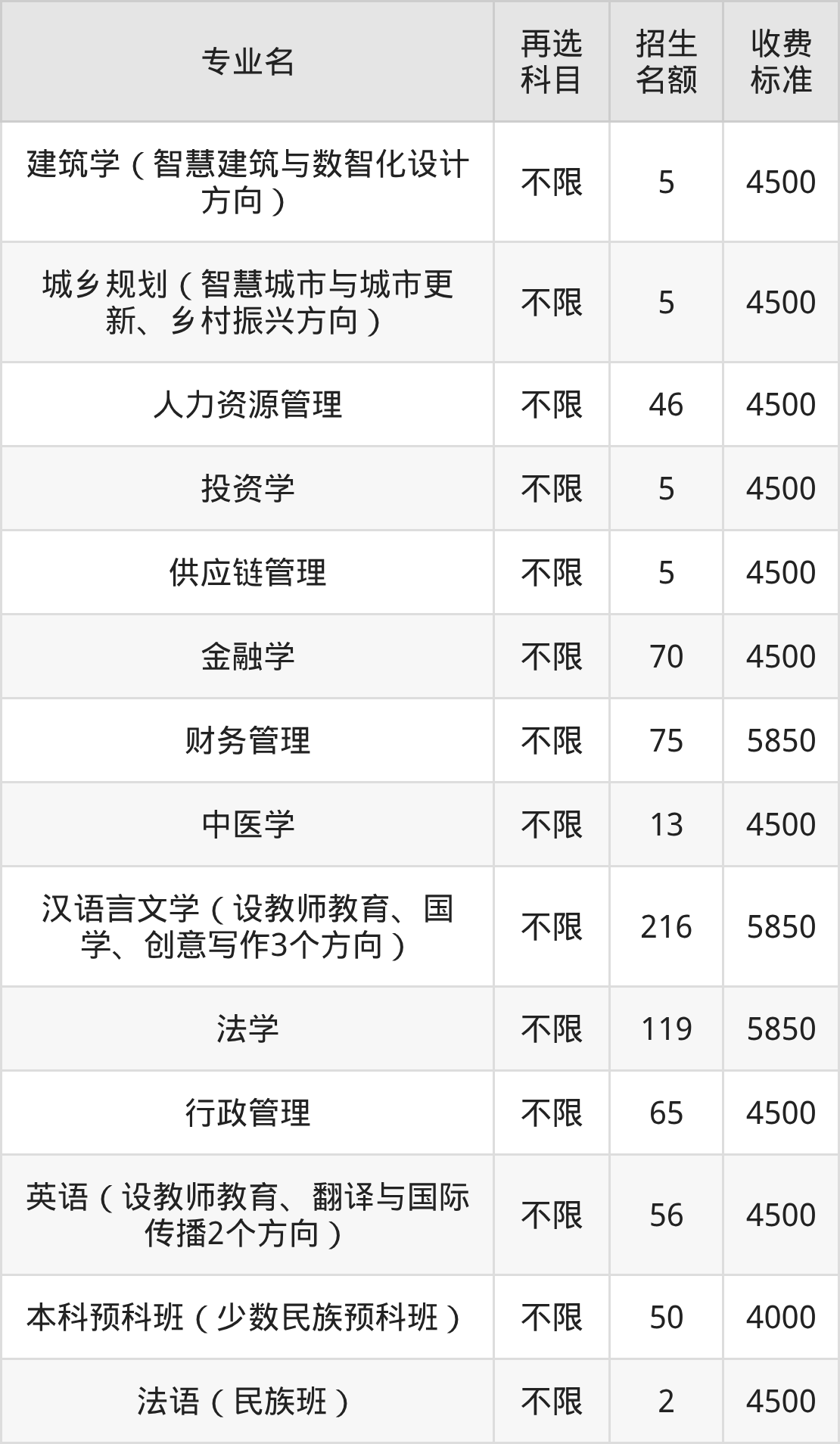 三峡大学在历史组本科批招生的各个专业,每年的学费是4000元-5850元。招生人数最多的专业是汉语言文学,2025年招216人,学费是5850元。