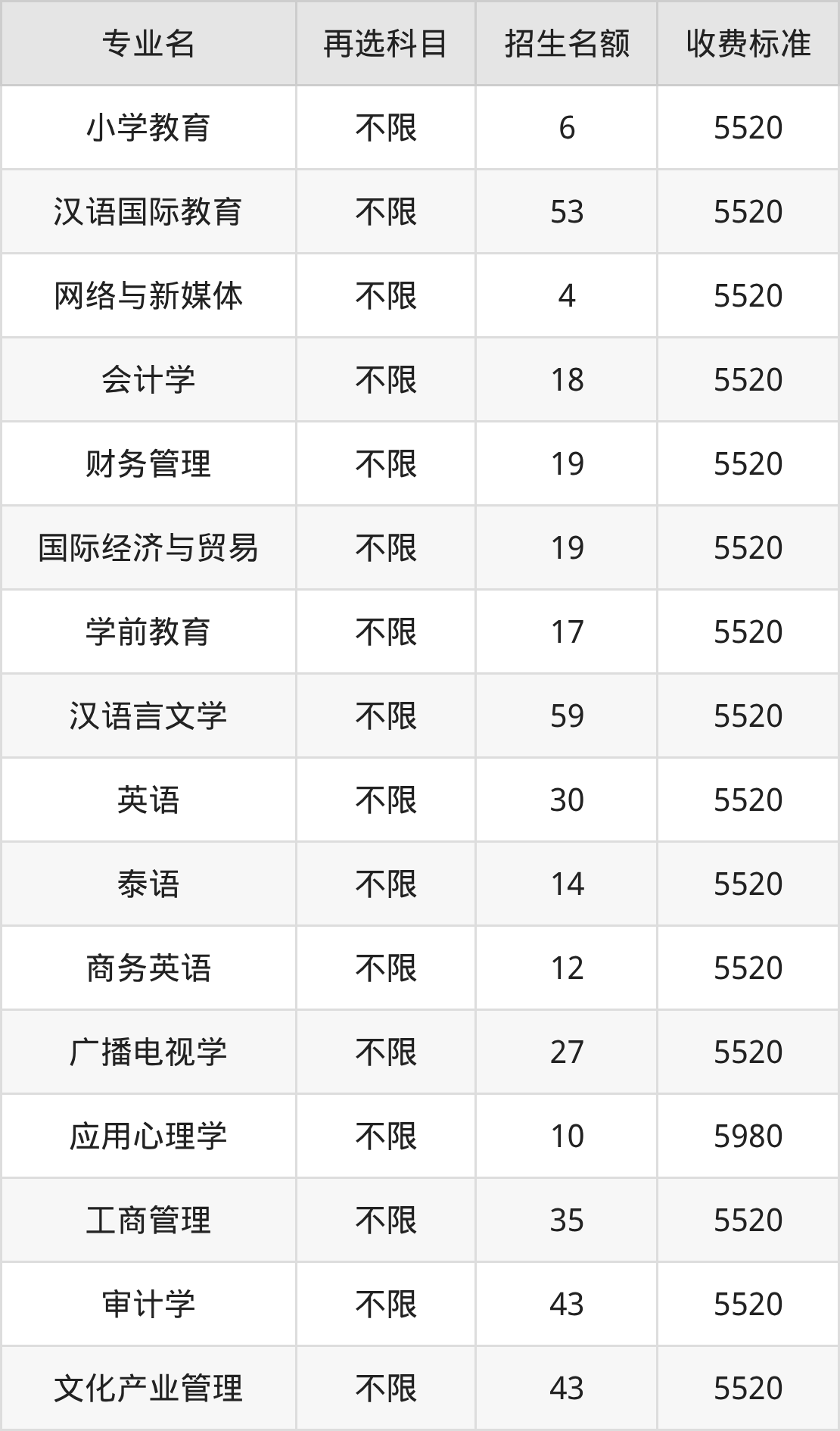 | 本科批B段 | 物理 | 泰语 | 18 |