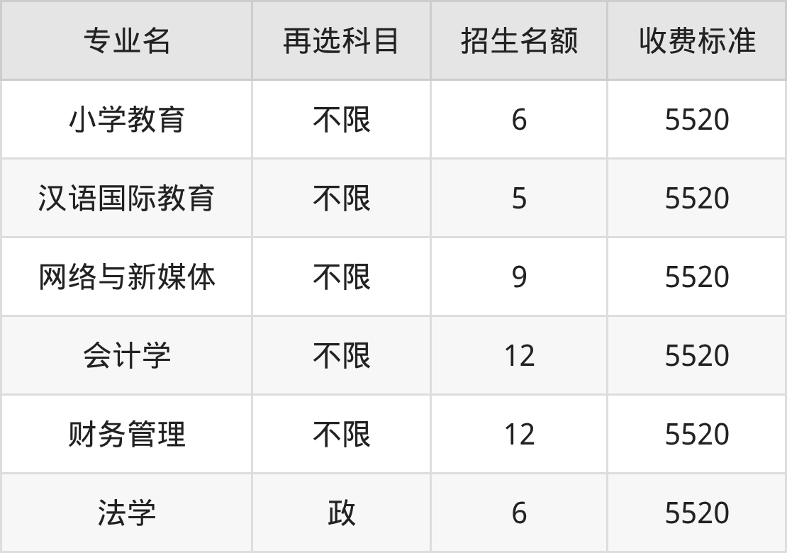 | 本科批A段(地方专项) | 物理 | 汉语国际教育 | 5 |