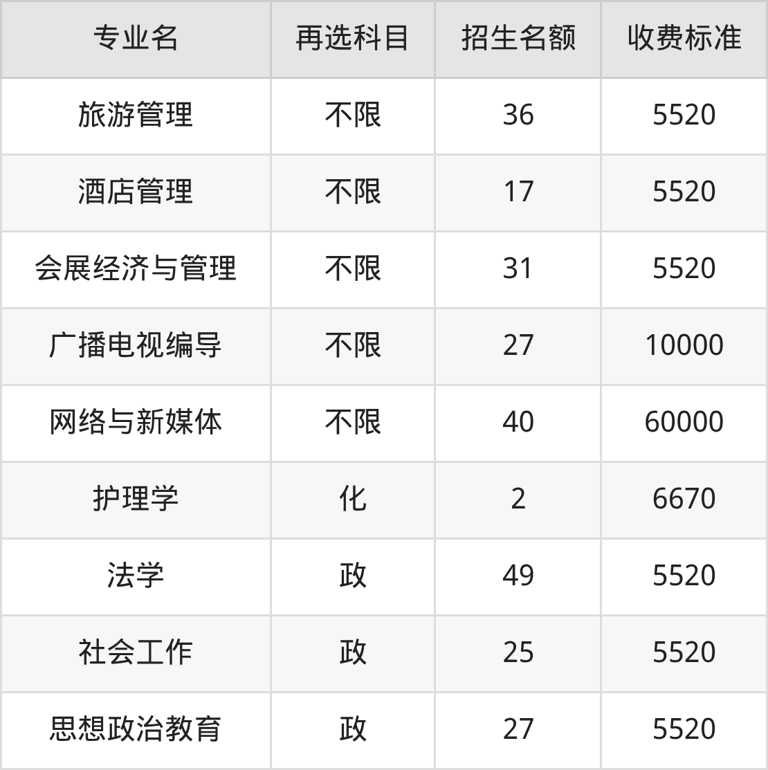 | 本科批B段 | 历史 | 酒店管理 | 17 |