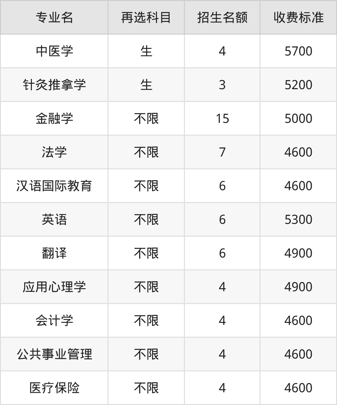 | 本科批 | 历史 | 汉语国际教育 | 11 |