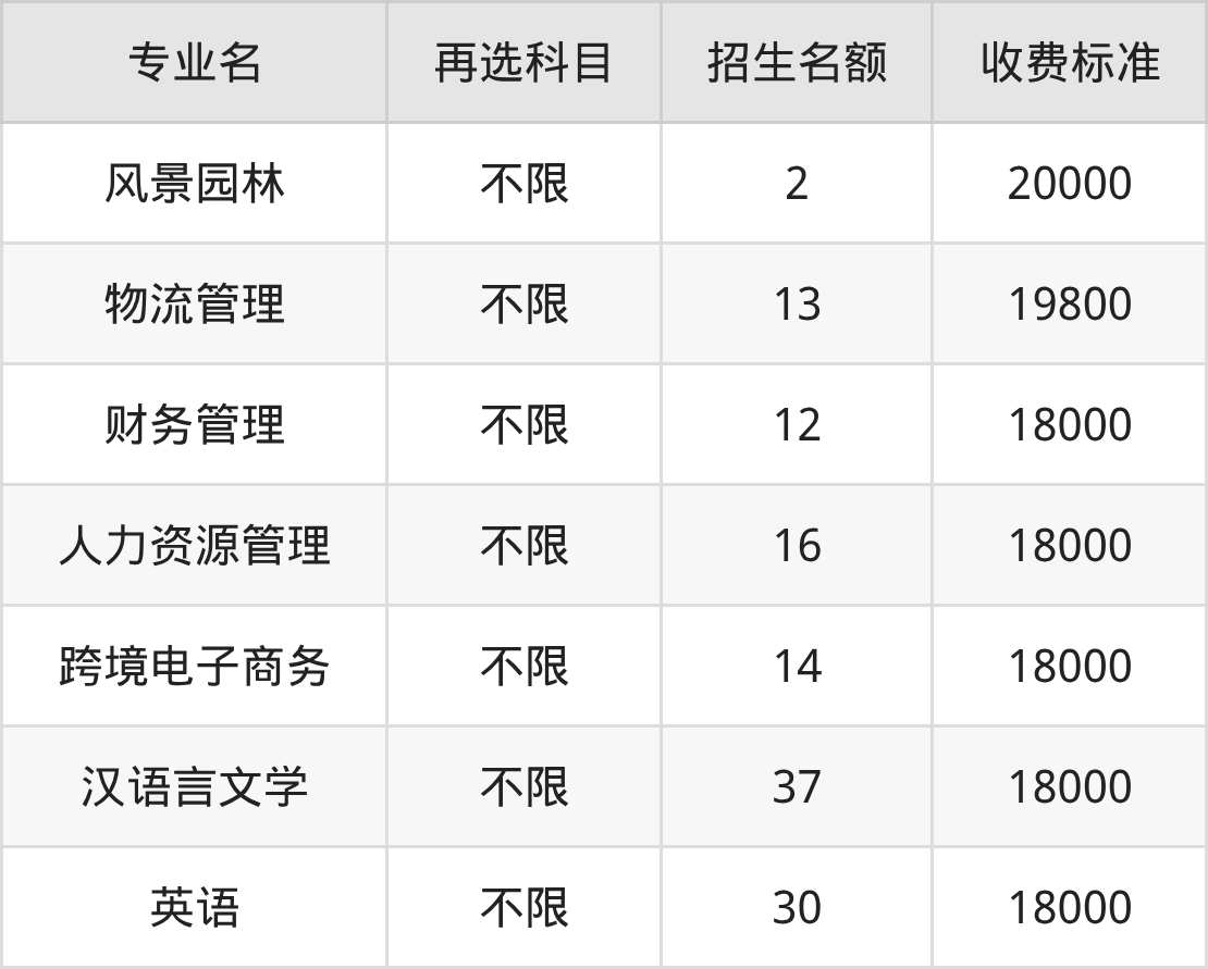 | 本科批 | 物理 | 人力资源管理 | 20 |