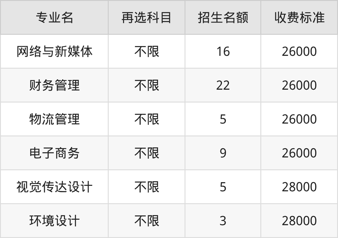哈尔滨信息工程学院在历史组本科批招生的各个专业,每年的学费是26000元-28000元。招生人数最多的专业是财务管理,2025年招22人,学费是26000元。