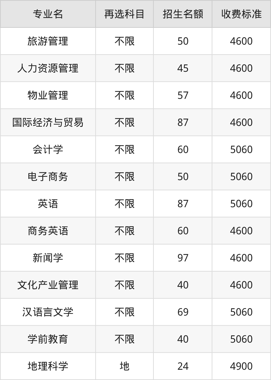 宿州学院在历史组本科批招生的各个专业,每年的学费是4600元-5060元。招生人数最多的专业是新闻学,2025年招97人,学费是4600元。