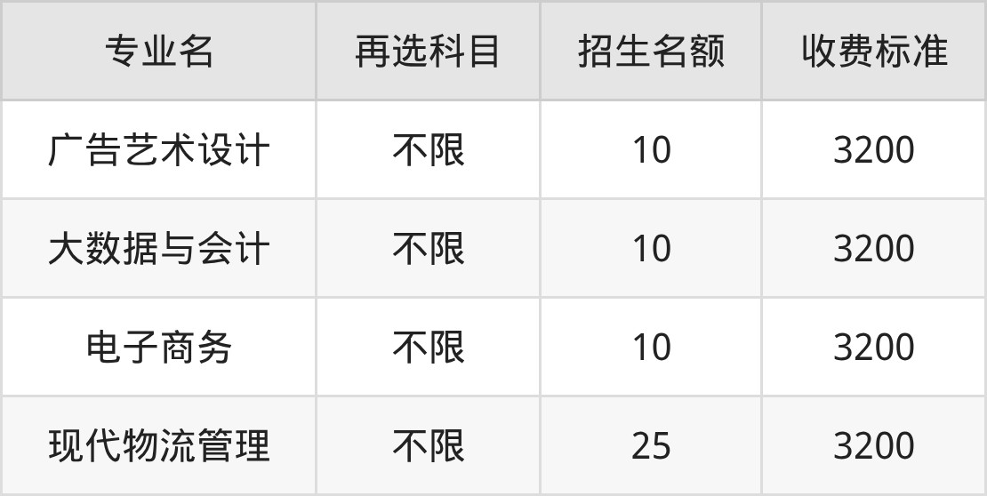 | 高职专科批 | 历史 | 广告艺术设计 | 10 |
