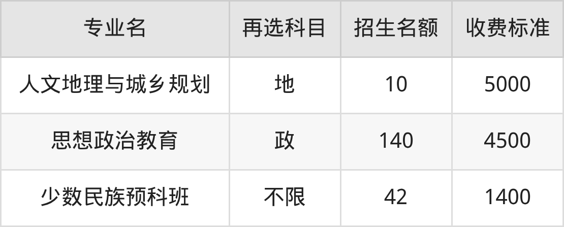 | 本科批B段 | 历史 | 少数民族预科班 | 1 |