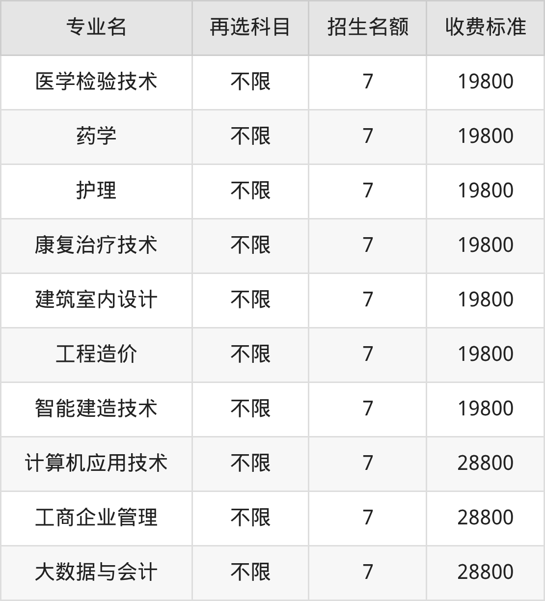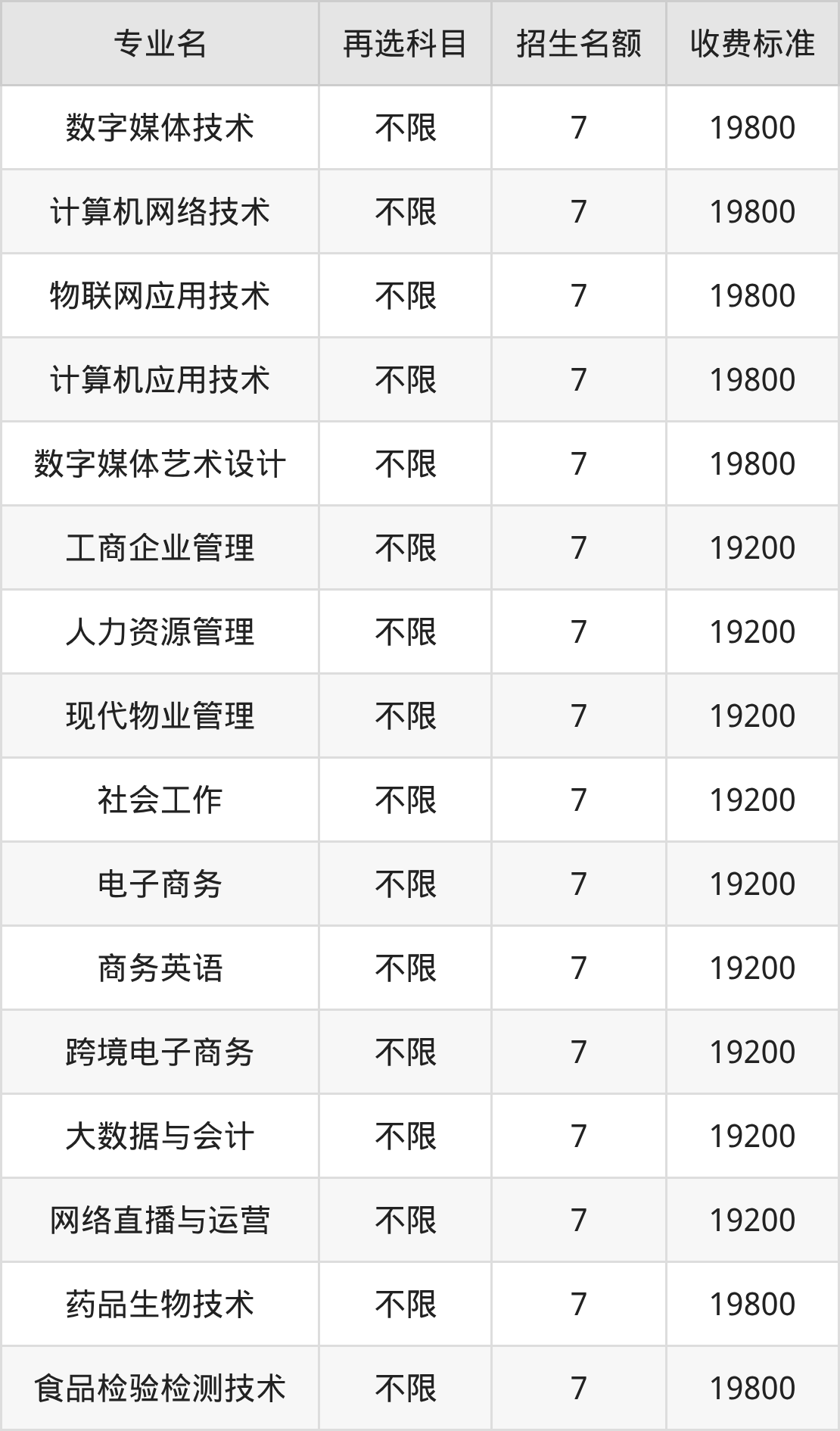 | 专科高职批 | 历史 | 计算机应用技术 | 7 |