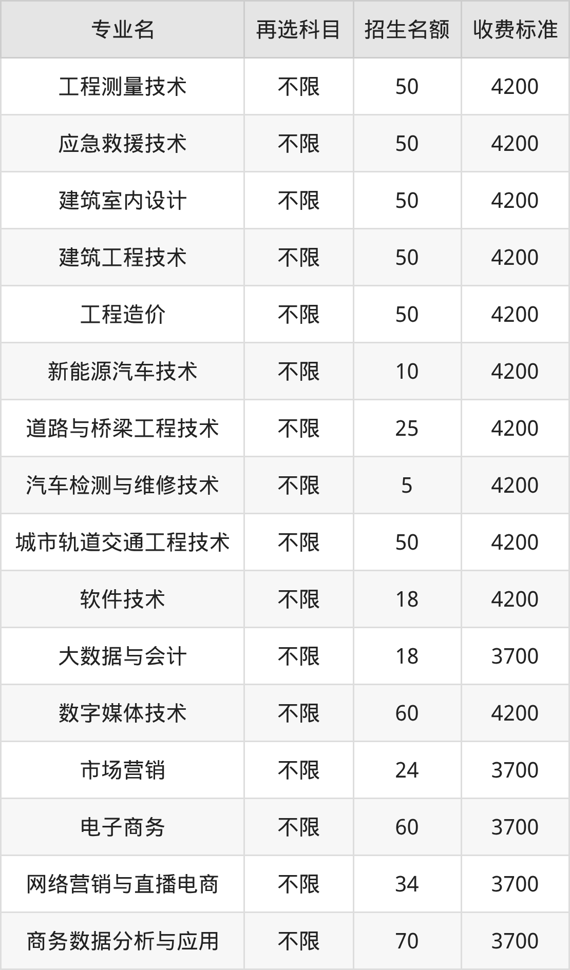 | 高职专科批 | 物理 | 建筑工程技术 | 50 |
