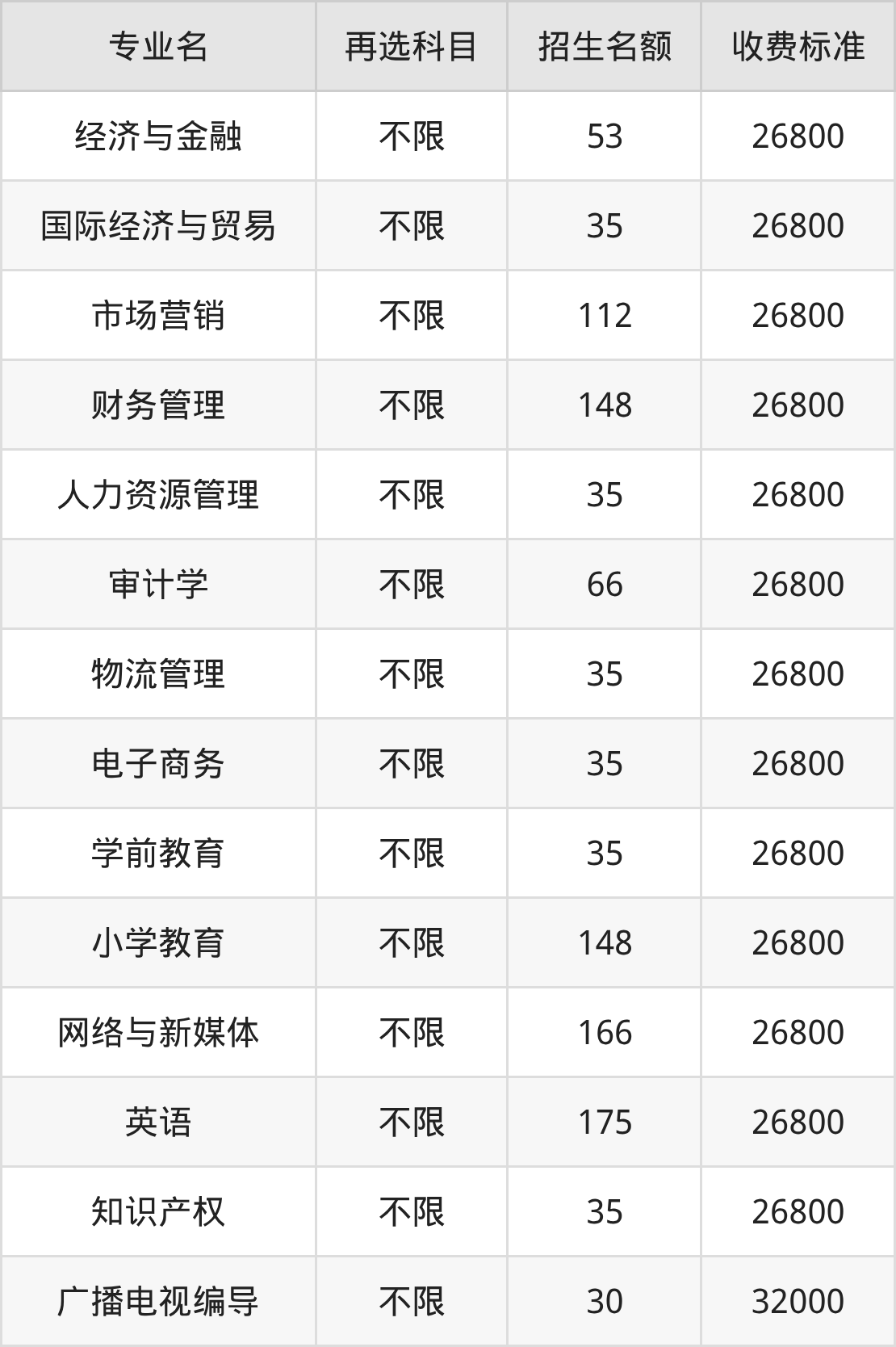 | 本科批B段 | 物理 | 经济与金融 | 10 |
