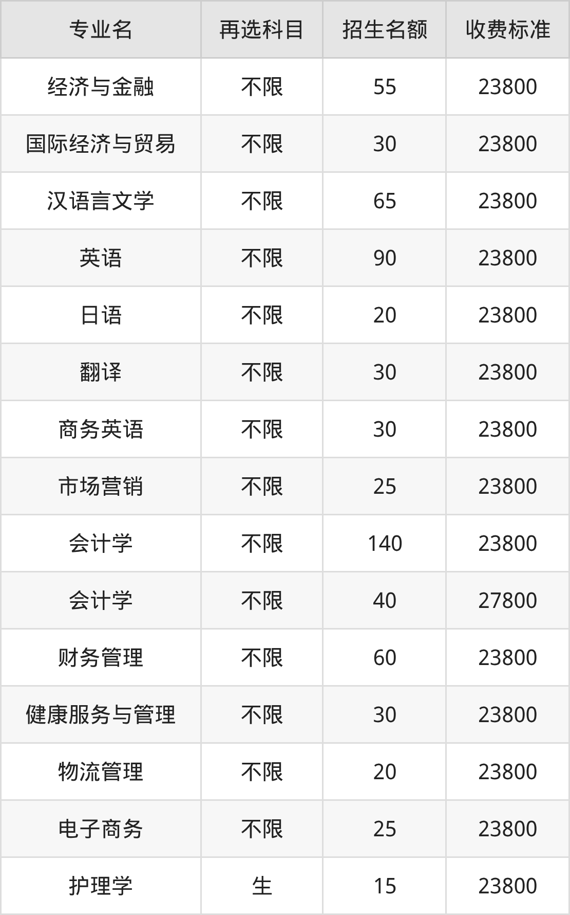 | 本科批 | 历史 | 会计学 | 140 |