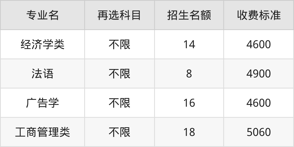 | 本科提前批B | 历史 | 广告学 | 16 |