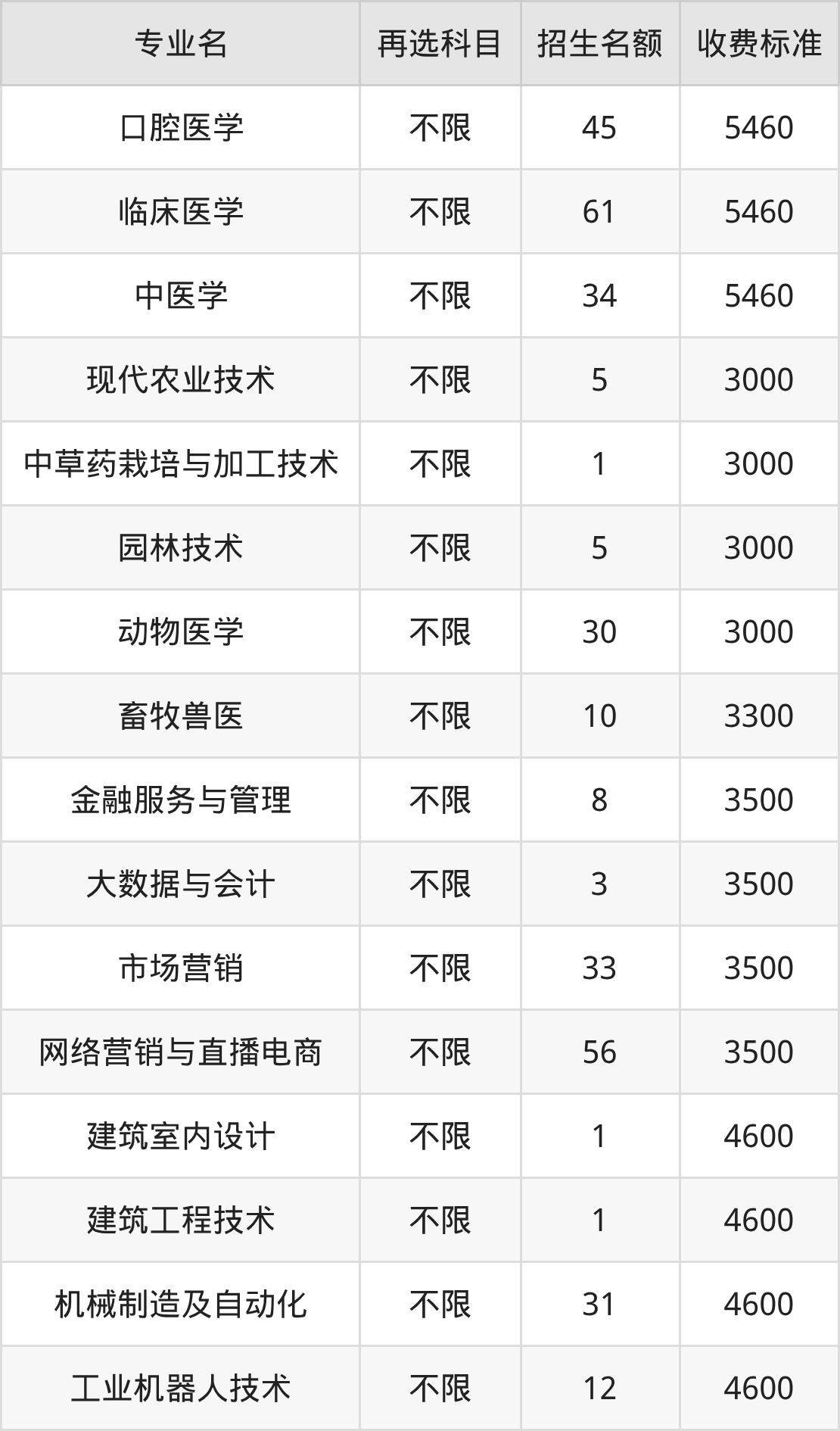 | 高职专科批 | 历史 | 动物医学 | 30 |