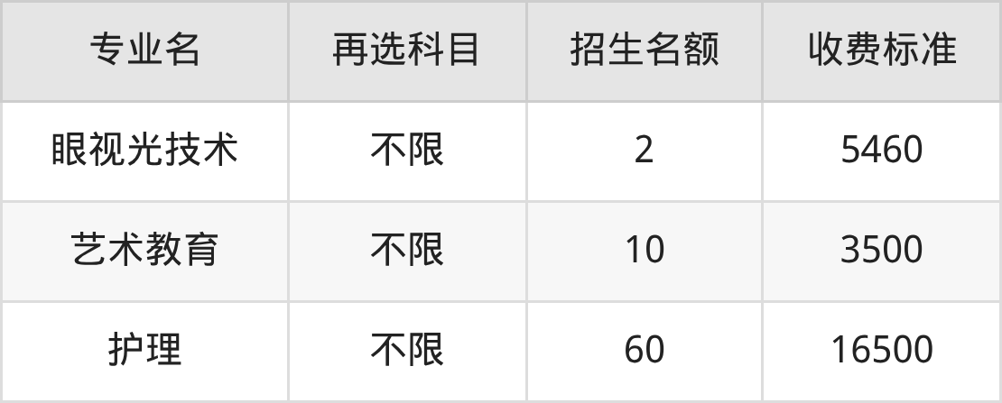 | 批次 | 首选 科目 | 专业名 | 招生 名额 |