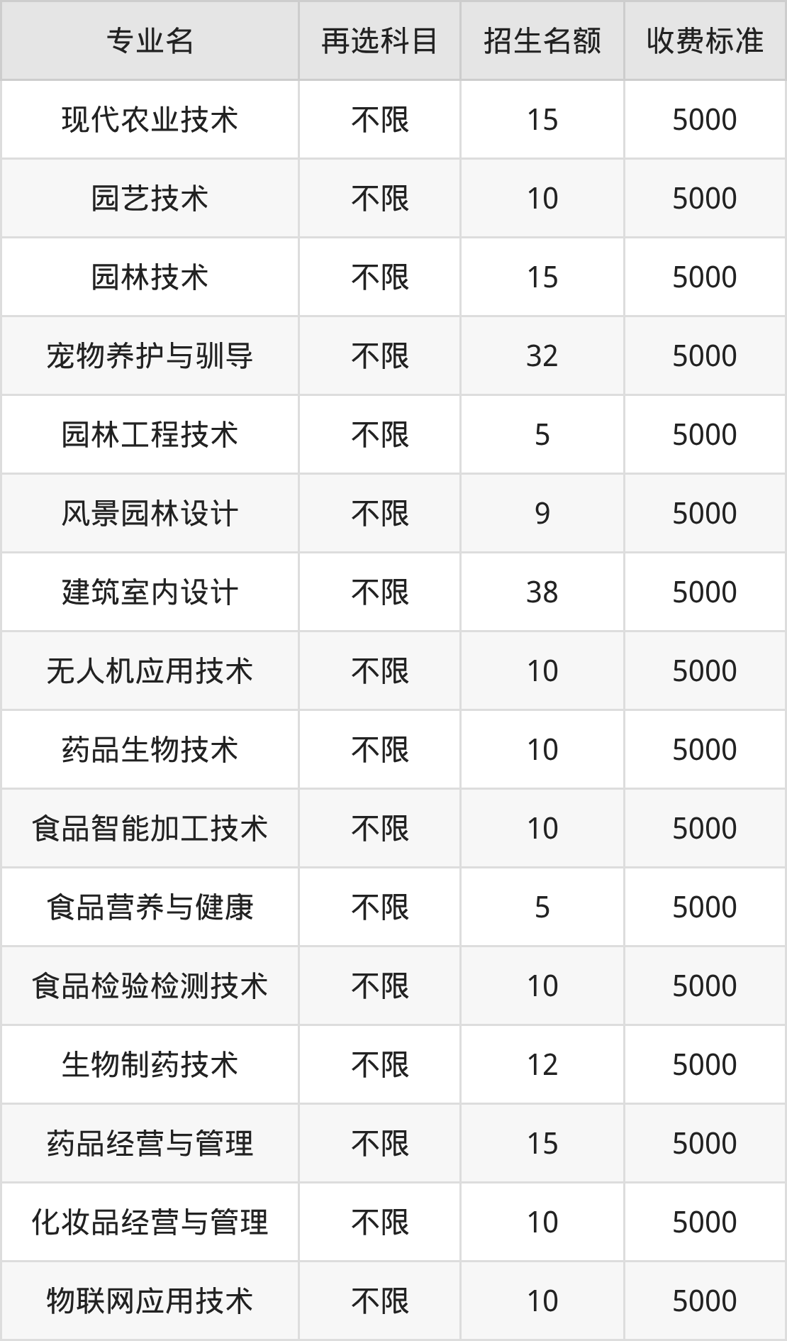 3.园林技术:学费是5000元