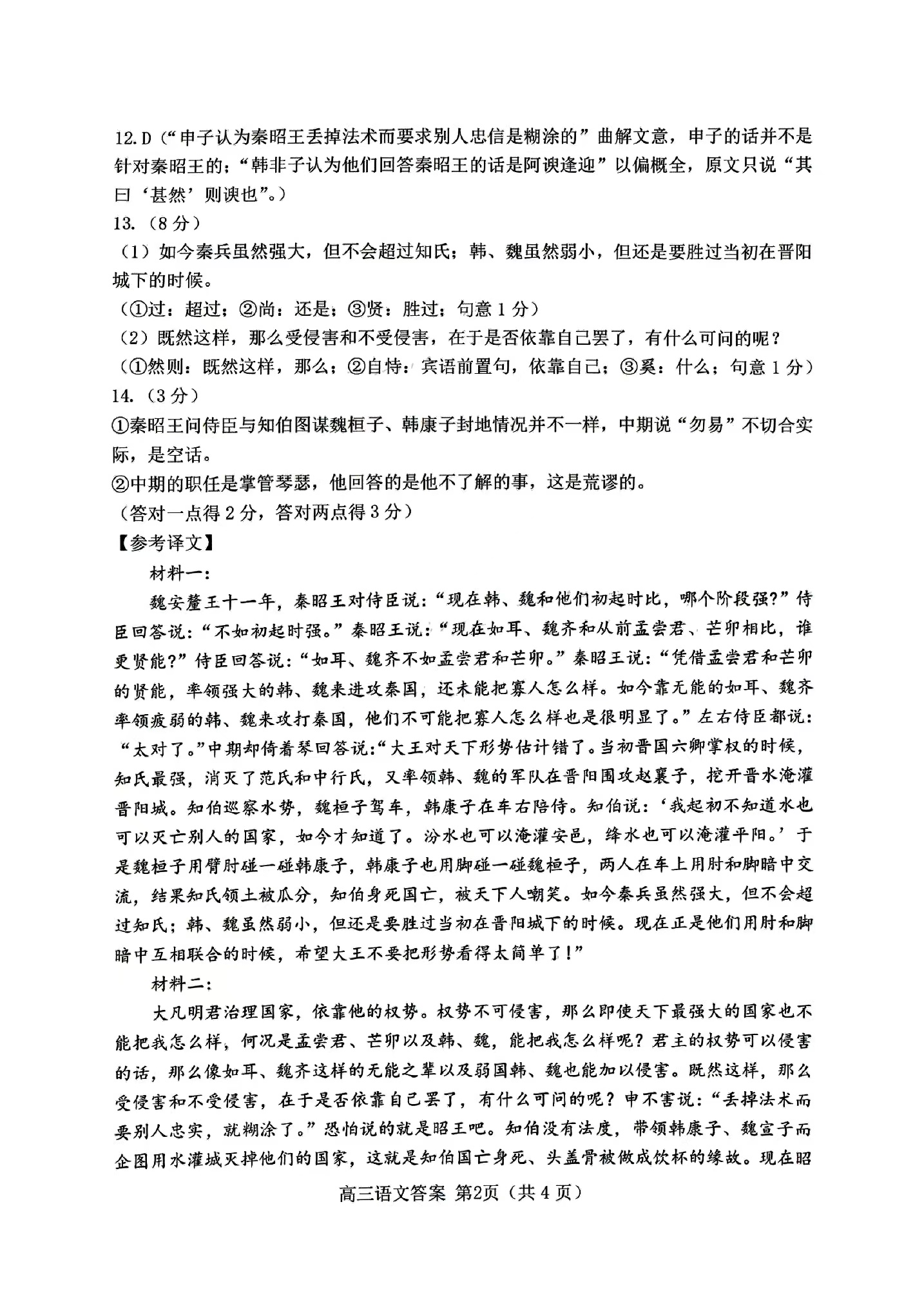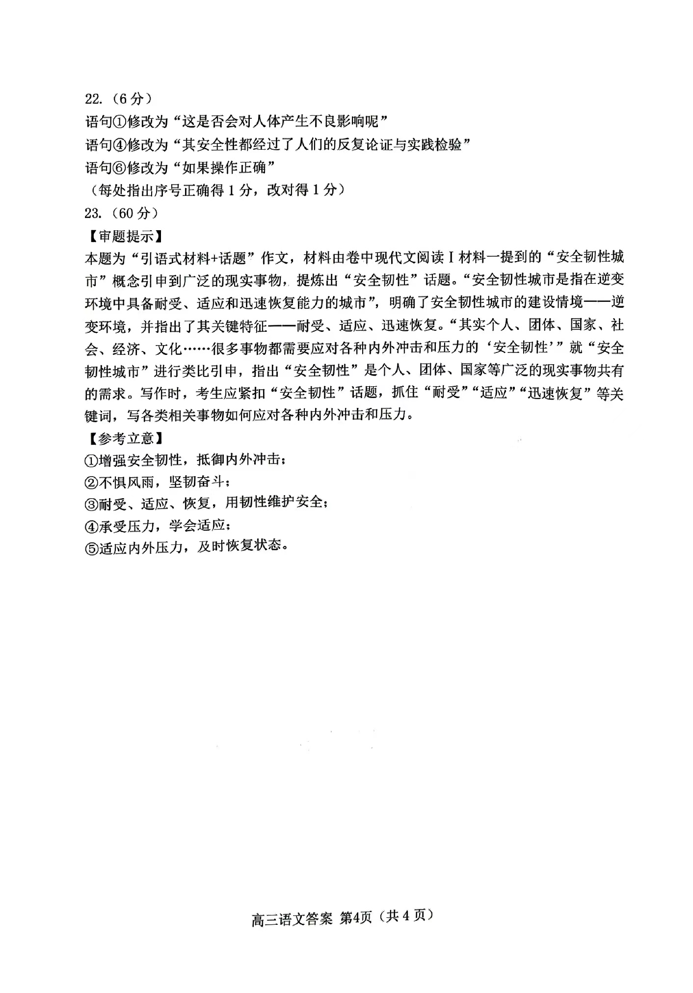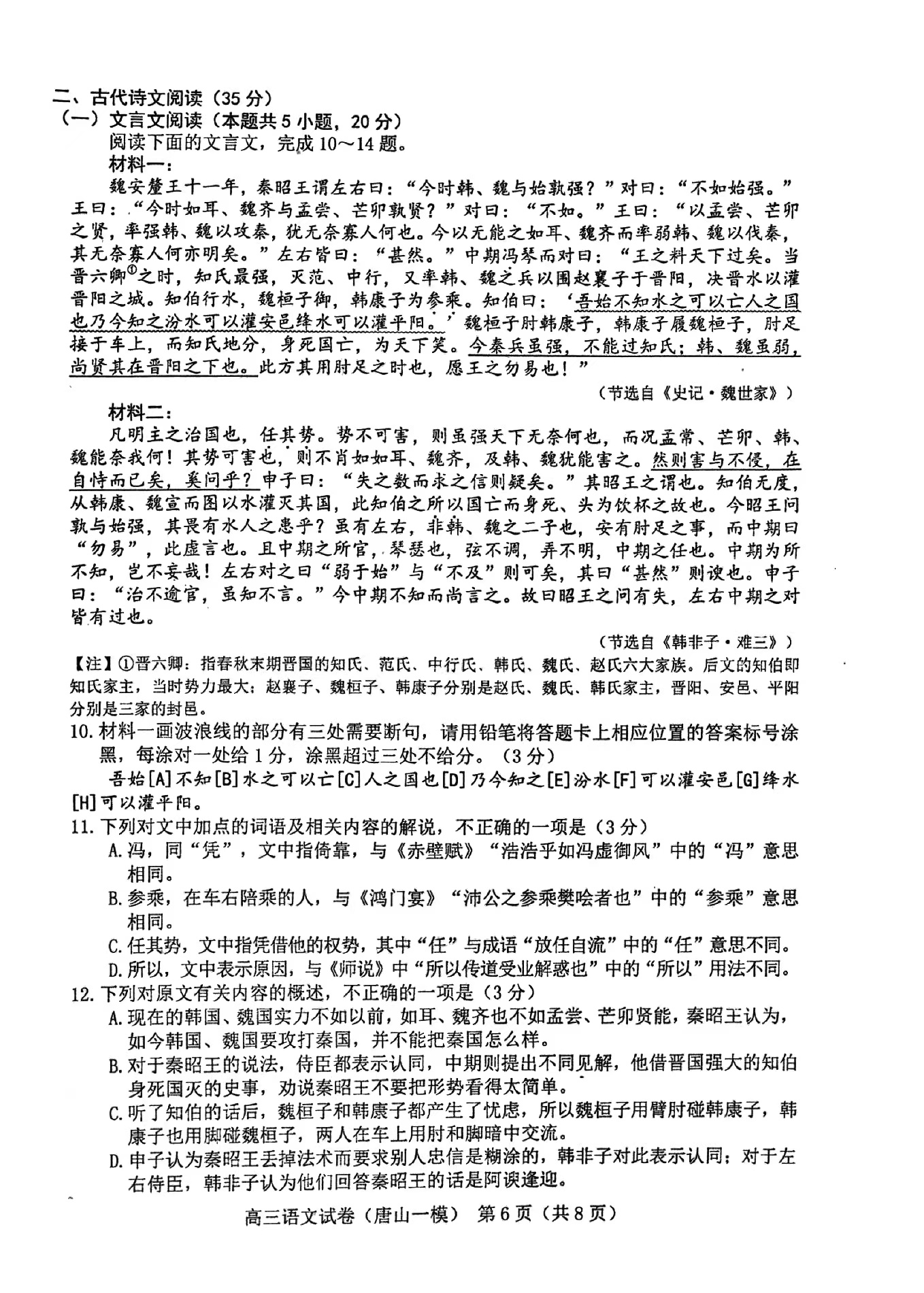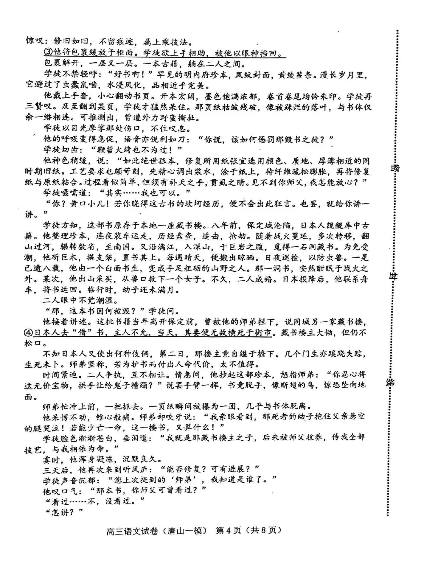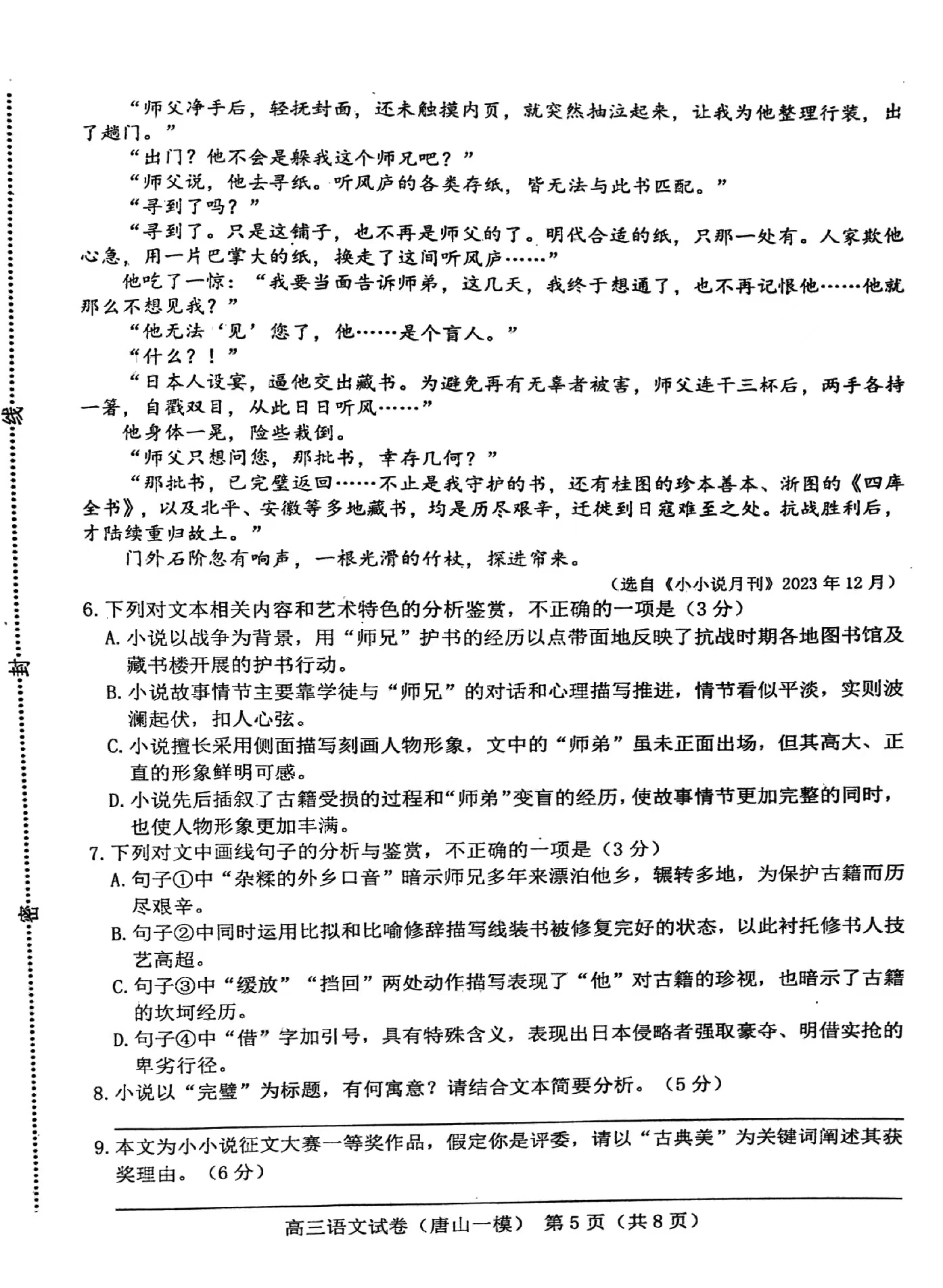 一、2024唐山一模语文答案及试卷