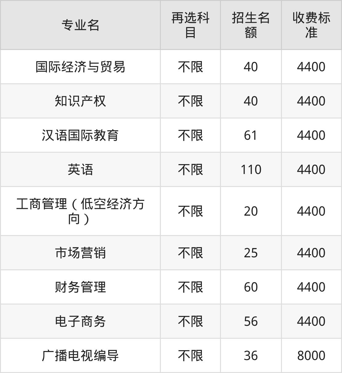 39.国际经济与贸易:学费是4400元