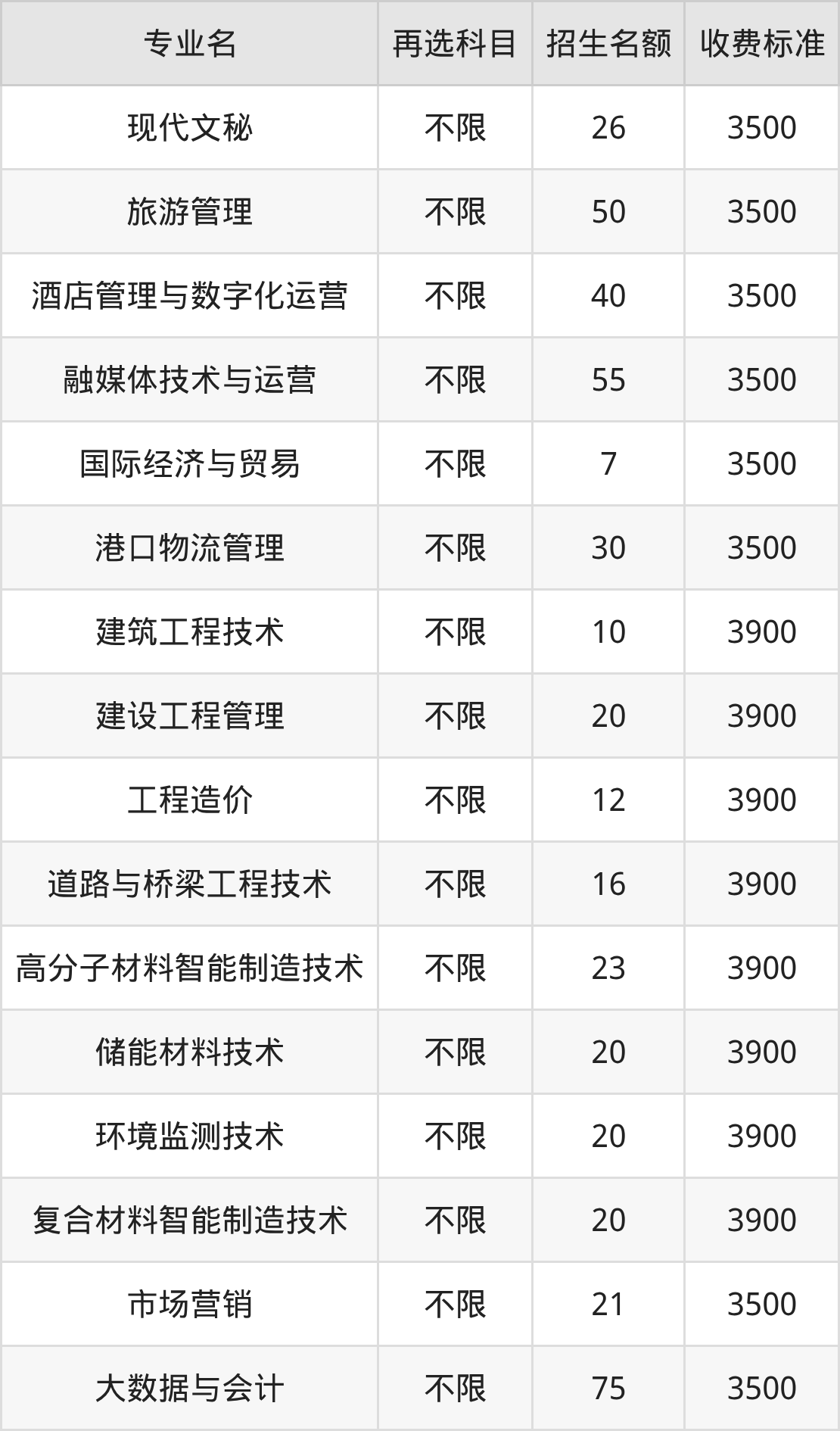 | 高职专科批 | 历史 | 旅游管理 | 50 |