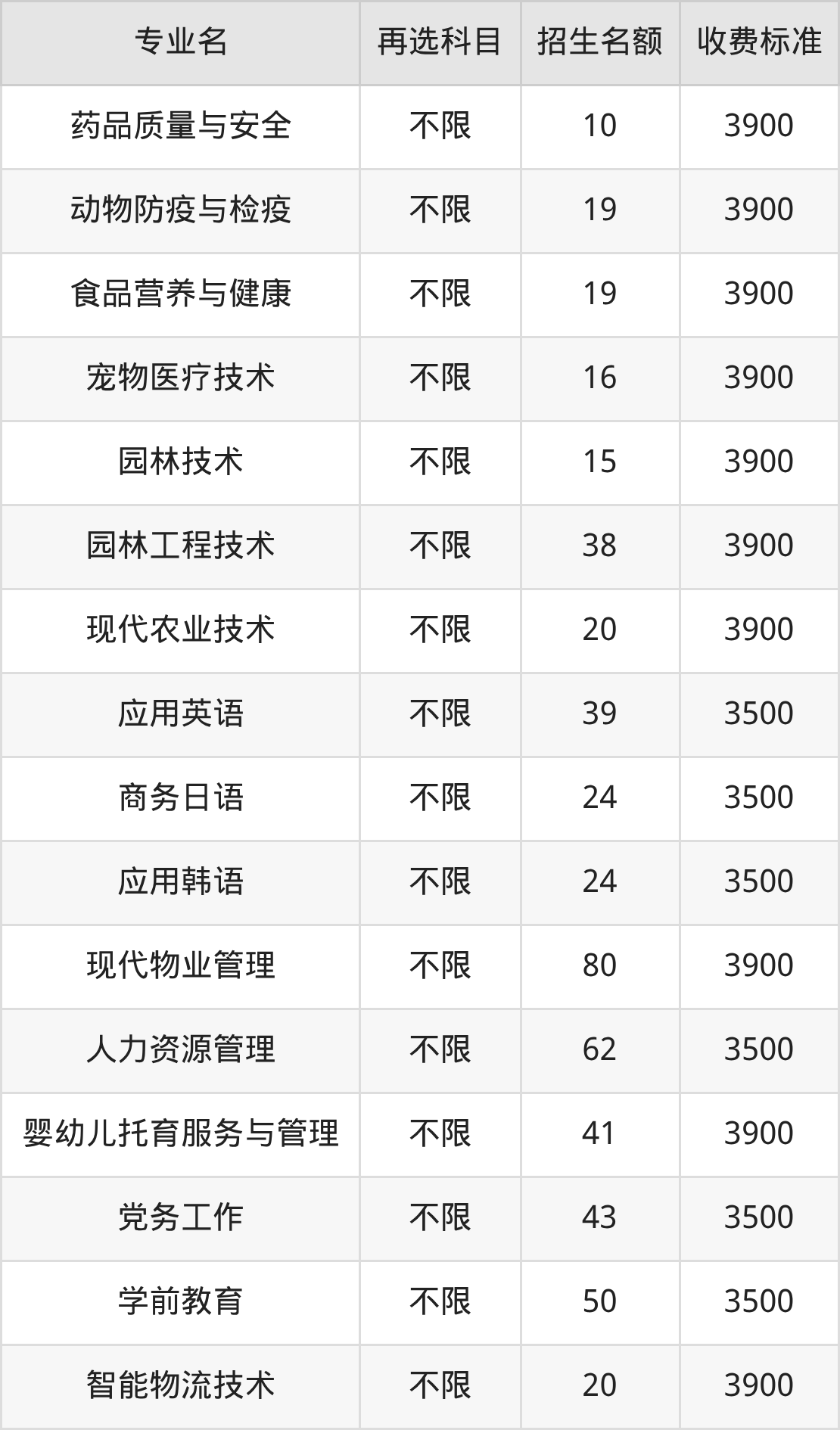 | 高职专科批 | 物理 | 人力资源管理 | 20 |