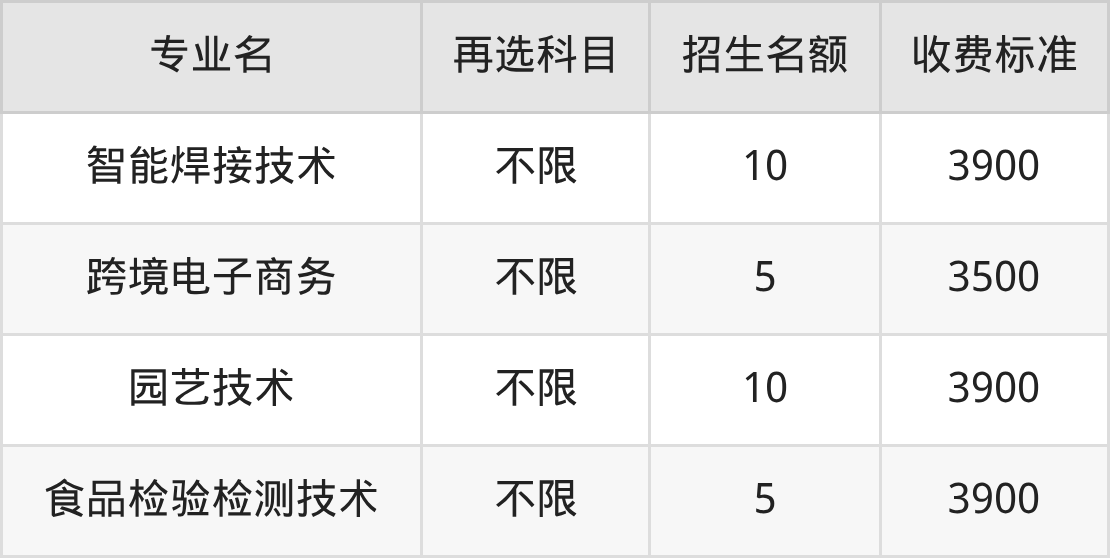 | 高职专科批 | 物理 | 应用英语 | 10 |