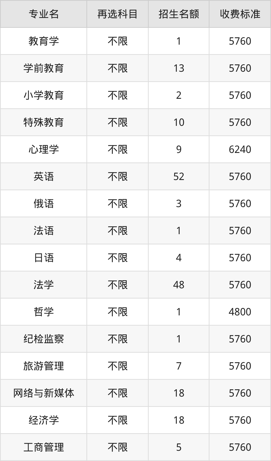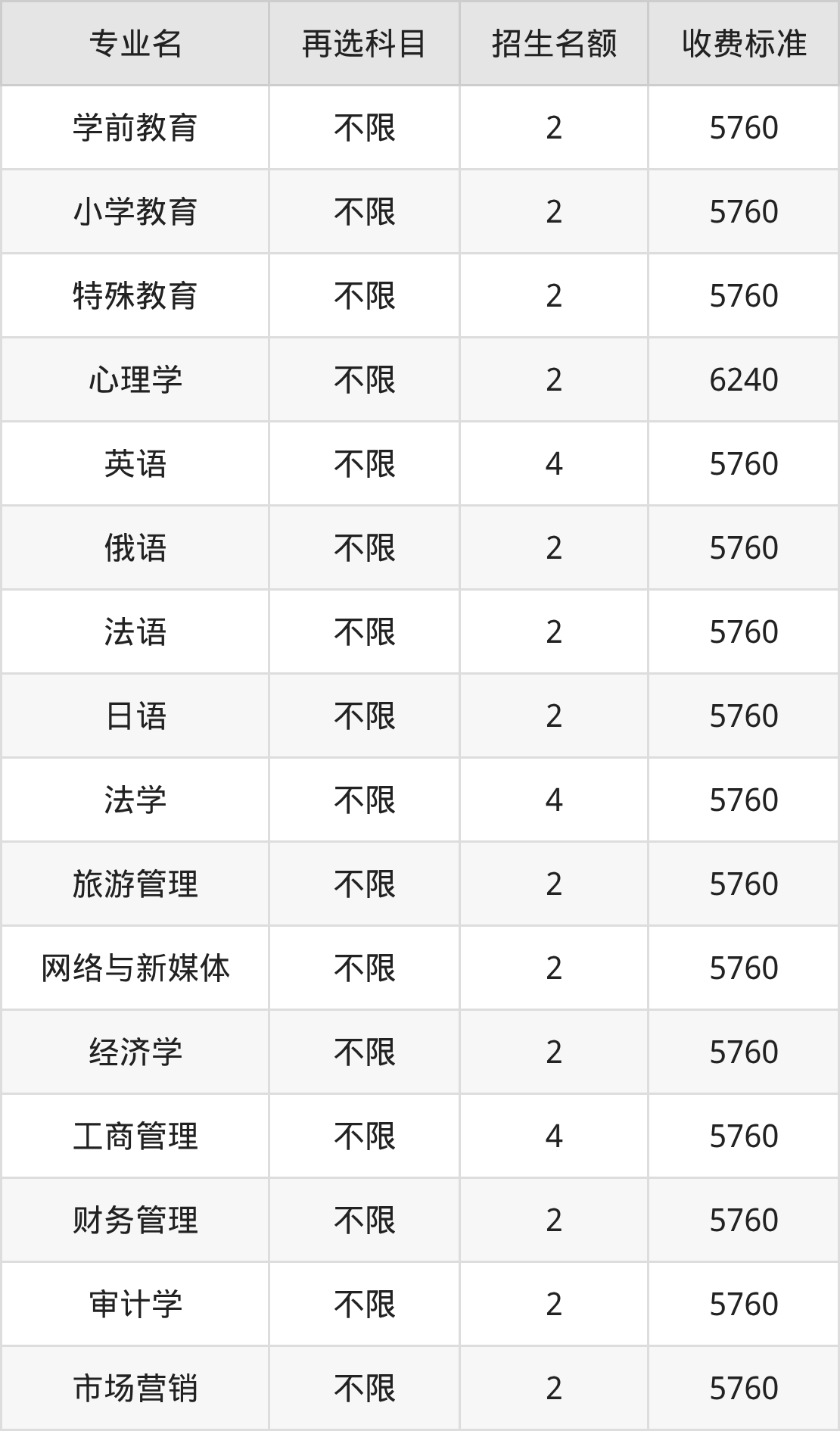 二、四川师范大学各专业收费标准