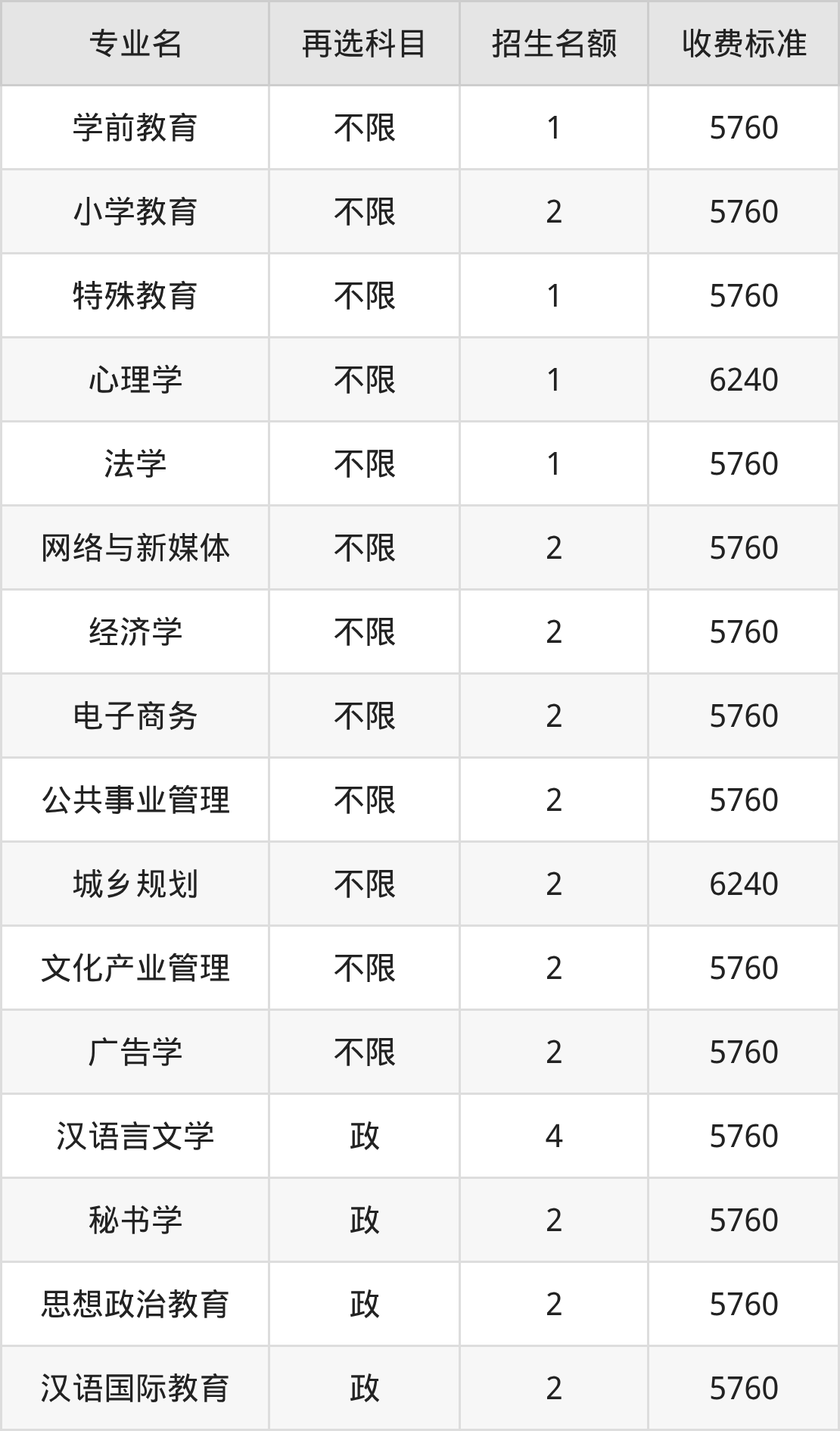 16.公共事业管理:学费是5760元