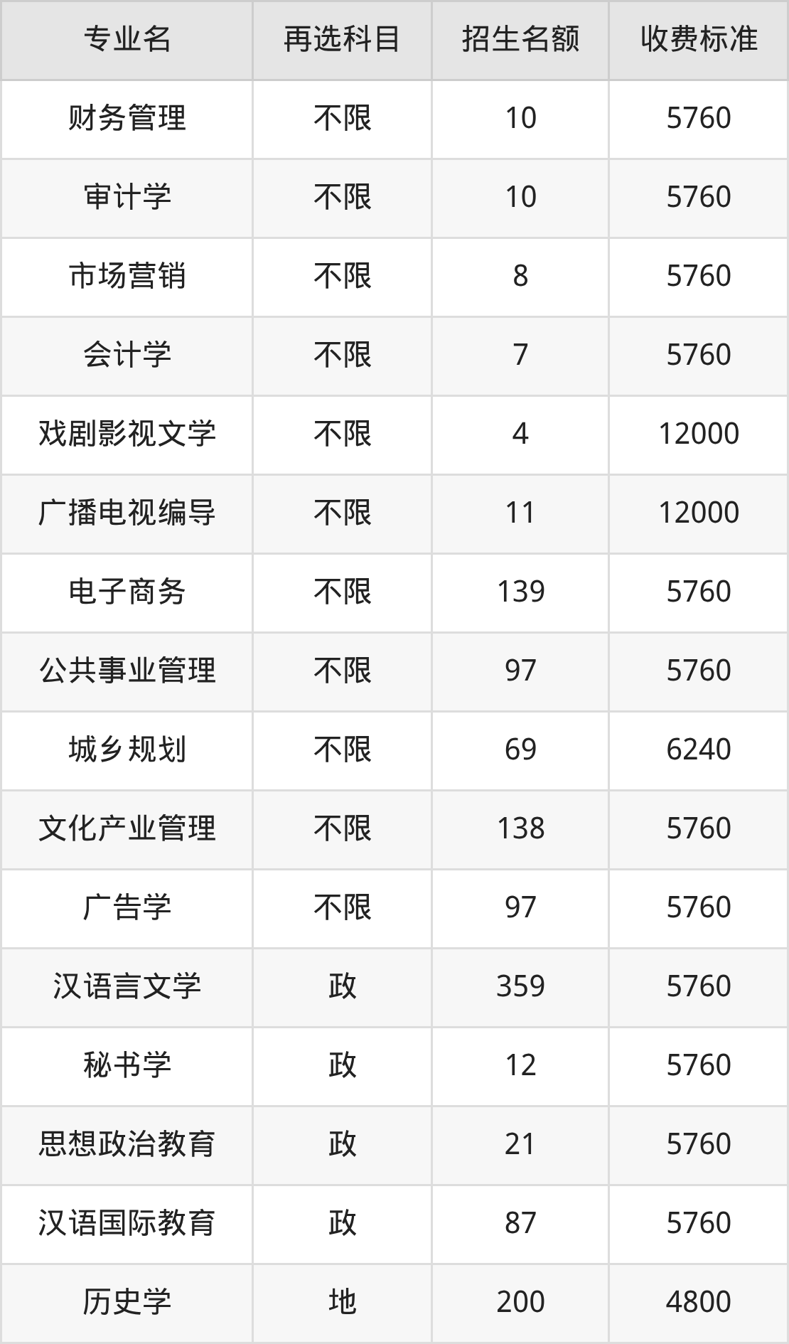 | 本科批B段 | 历史 | 戏剧影视文学 | 4 |