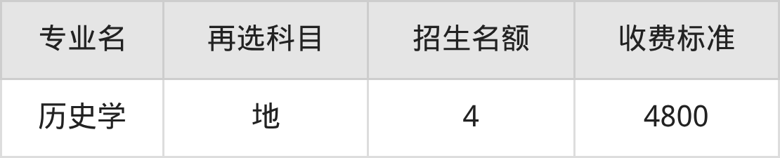 | 本科批A段(国家专项) | 历史 | 历史学 | 4 |