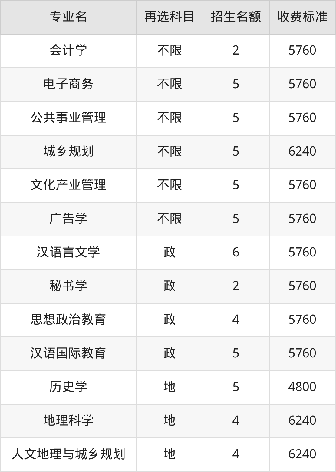 | 本科批A段(地方专项) | 历史 | 历史学 | 5 |
