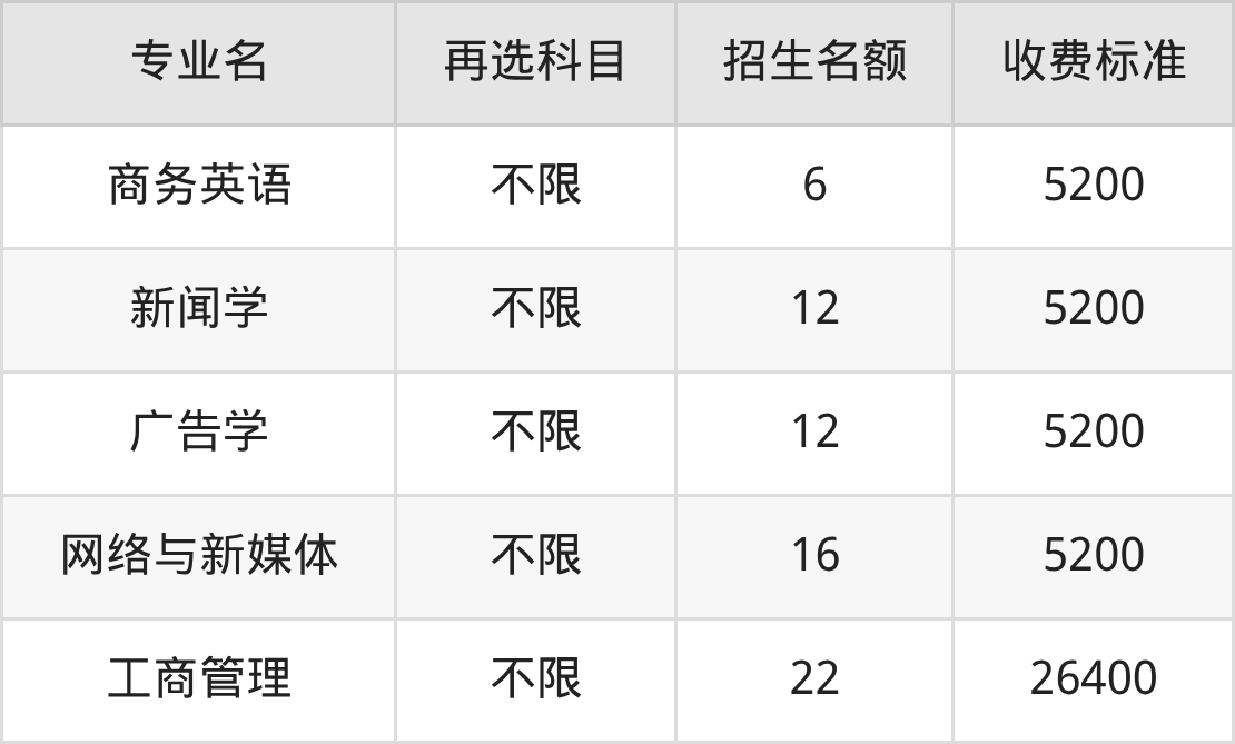 | 本科批 | 物理 | 商务英语 | 6 |