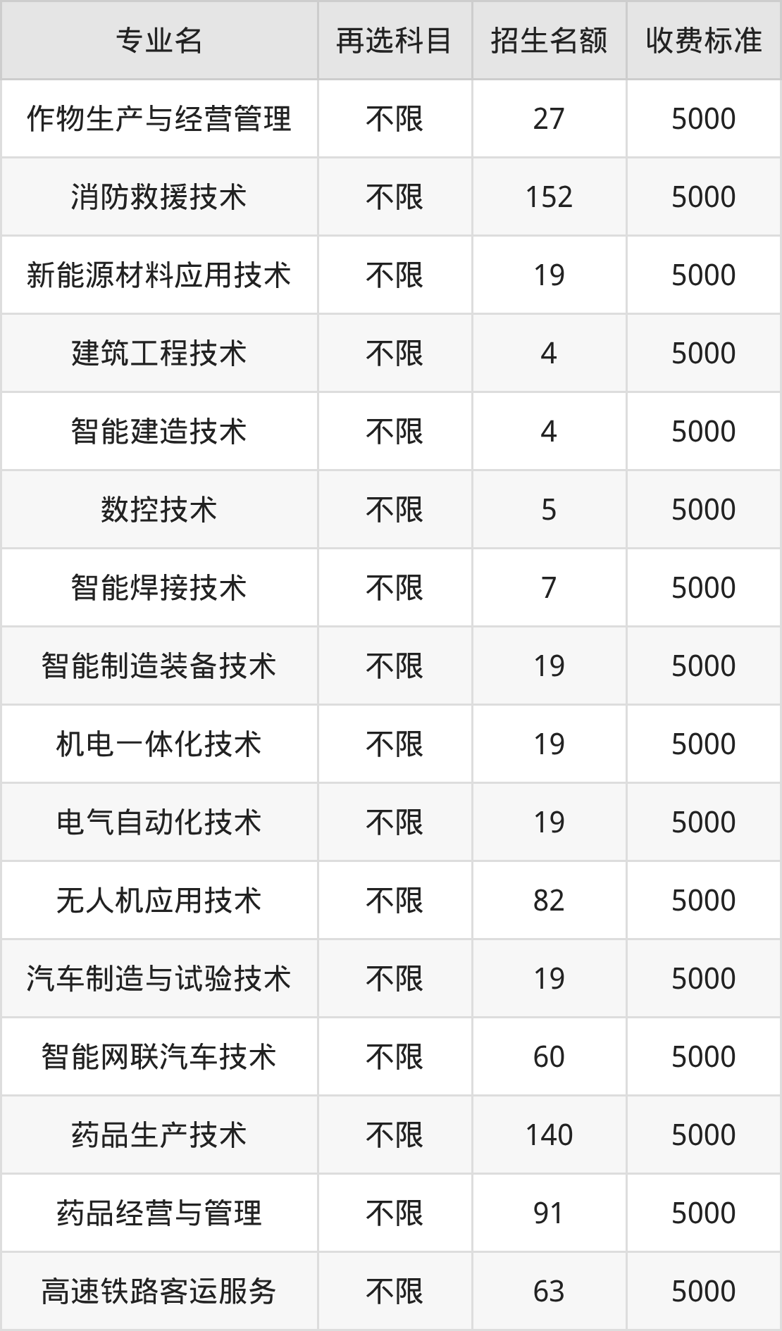 云南现代职业技术学院在历史组高职专科批招生的各个专业,每年的学费是5000元。招生人数最多的专业是消防救援技术,2025年招152人,学费是5000元。