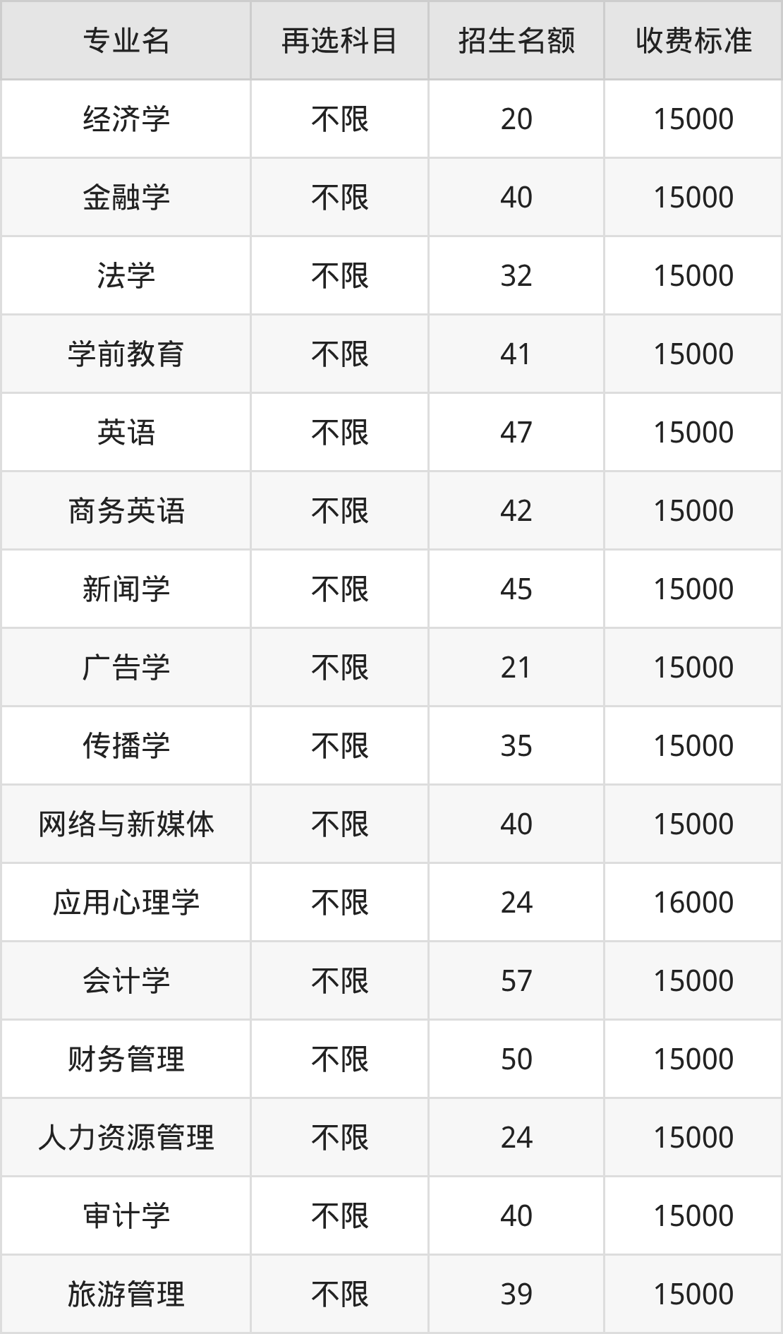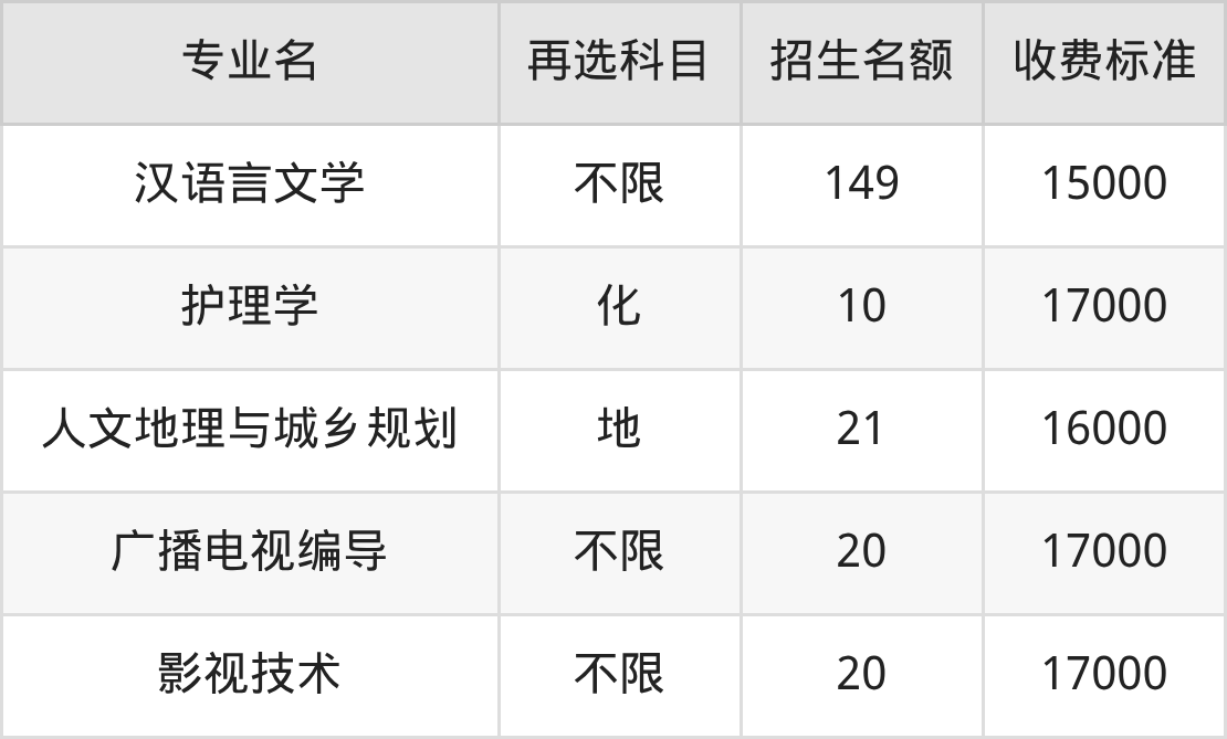| 本科批 | 物理 | 旅游管理 | 40 |