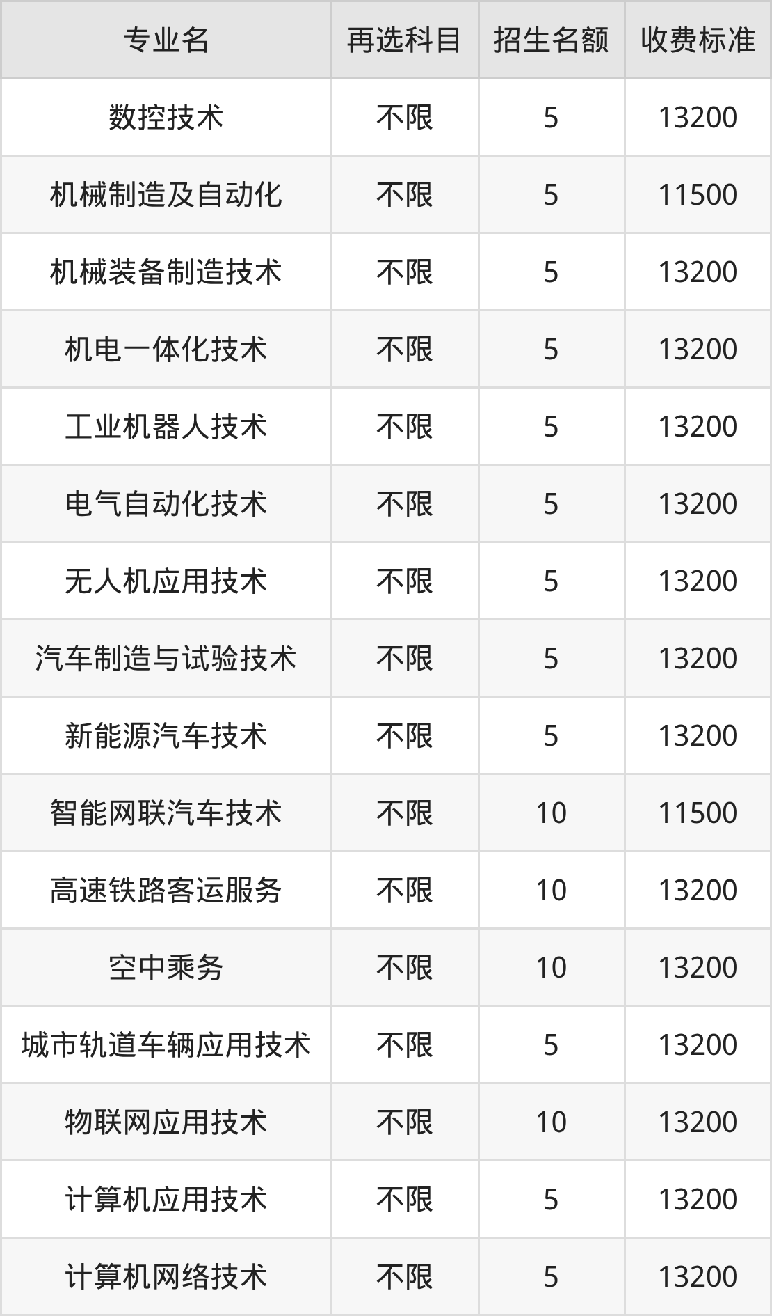 | 高职专科批 | 物理 | 机械制造及自动化 | 20 |
