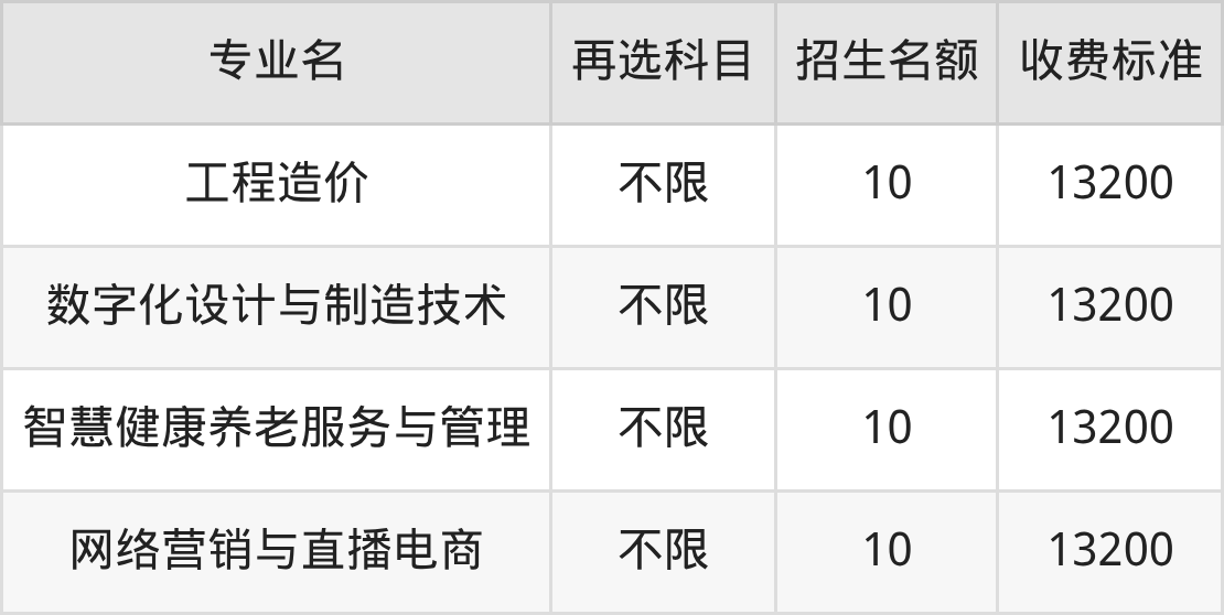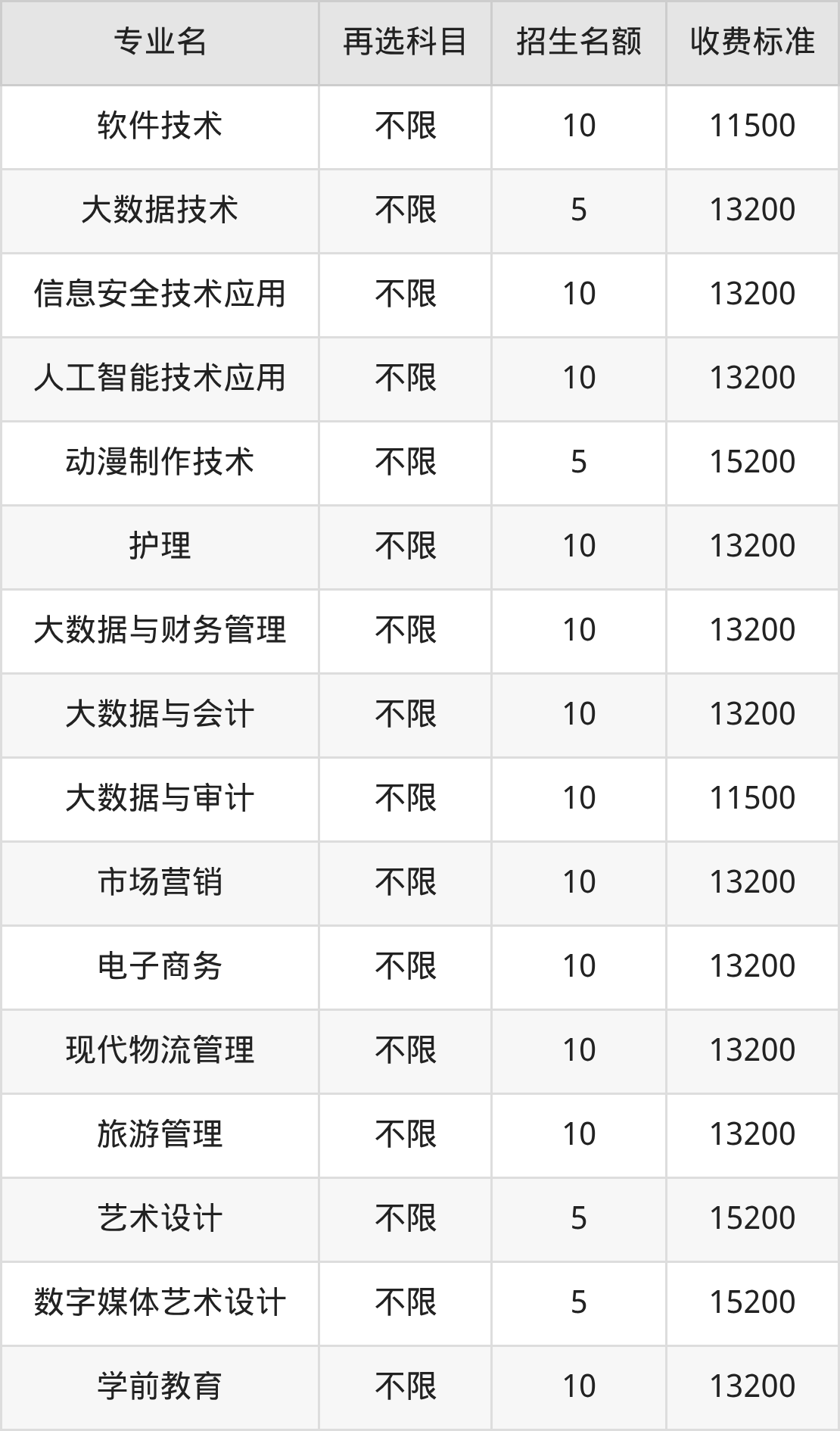 | 高职专科批 | 历史 | 软件技术 | 10 |