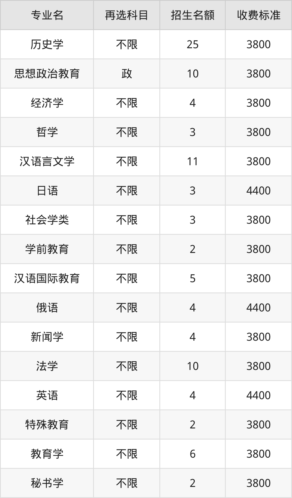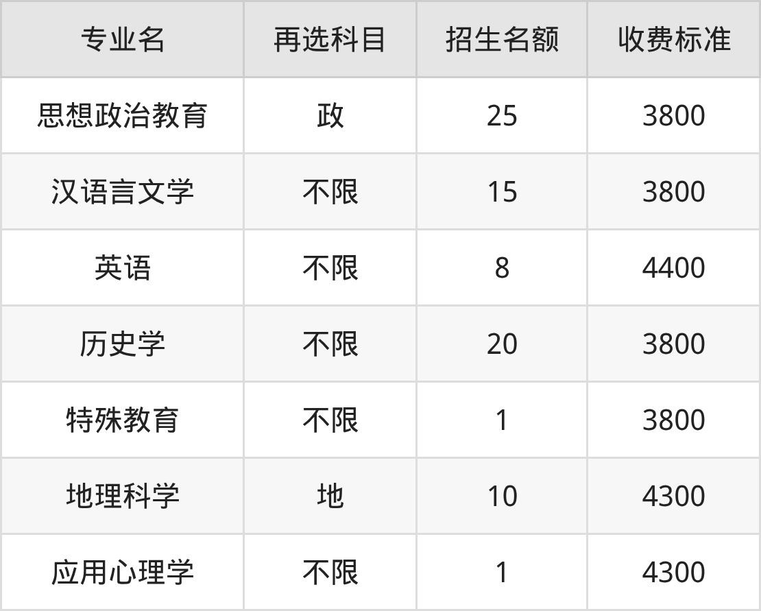 | 本科批C段 | 历史 | 思想政治教育 | 4 |