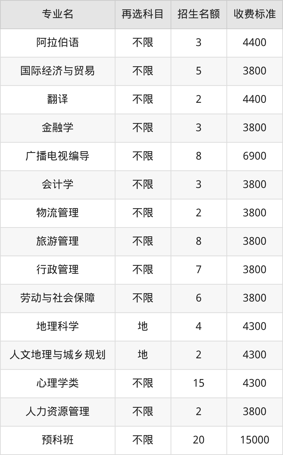 20.旅游管理:学费是3800元