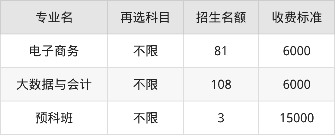 | 高职专科批 | 历史 | 电子商务 | 5 |