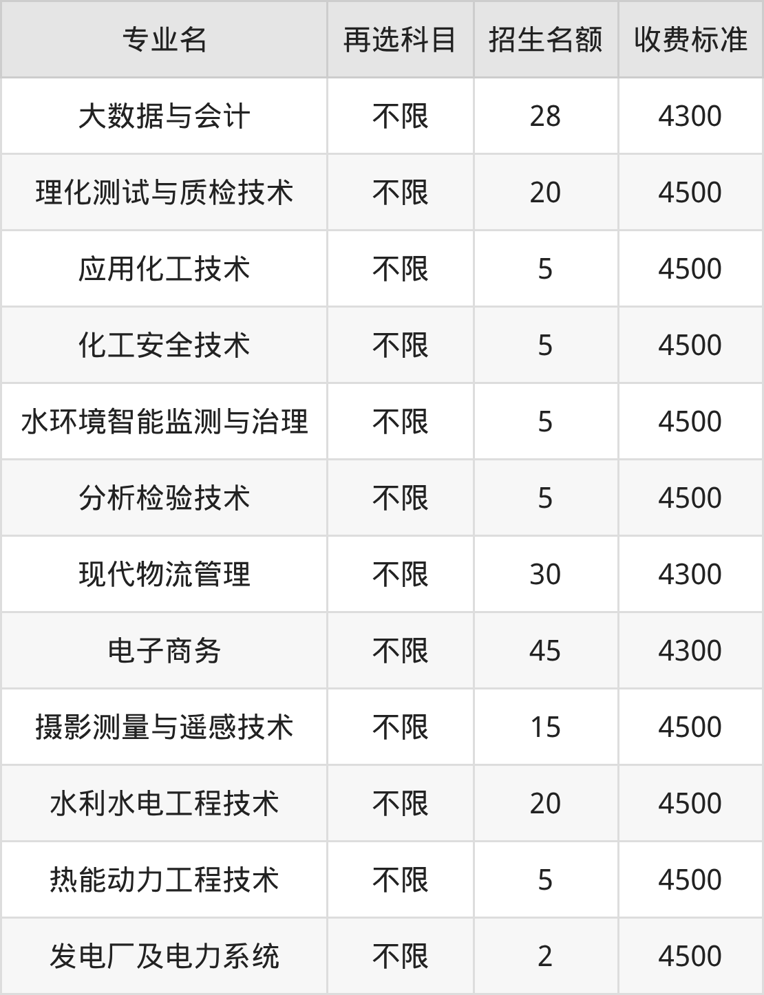 16.水利水电工程技术:学费是4500元