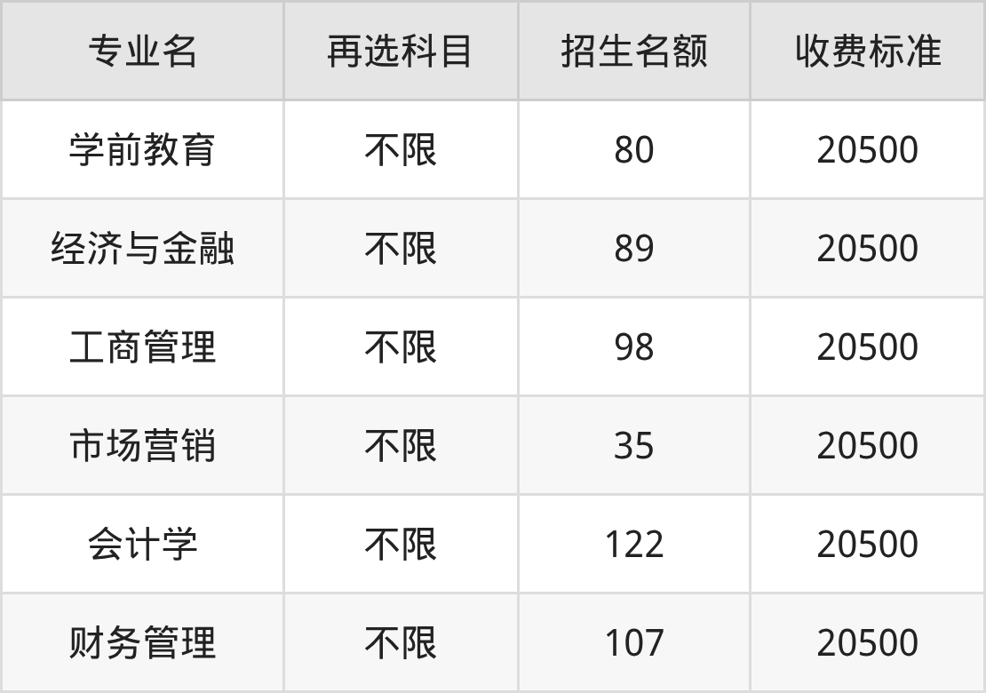 | 本科批 | 历史 | 财务管理 | 107 |