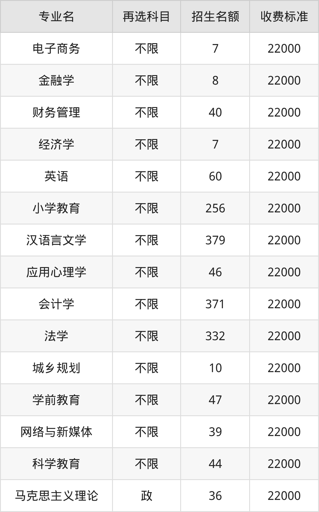 昆明城市学院在历史组本科批B段招生的各个专业,每年的学费是22000元。招生人数最多的专业是汉语言文学,2025年招379人,学费是22000元。