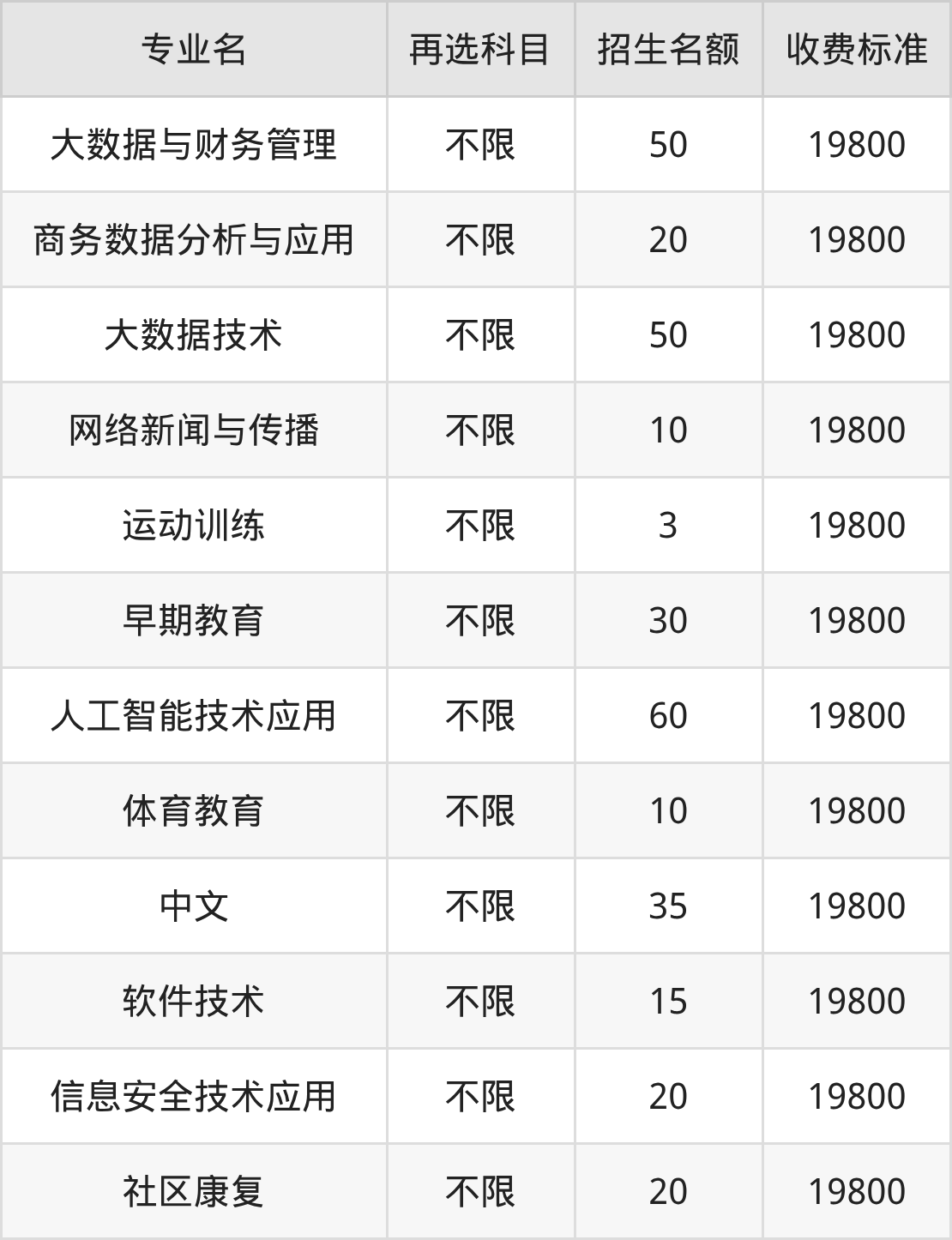| 高职专科批 | 历史 | 大数据与财务管理 | 50 |