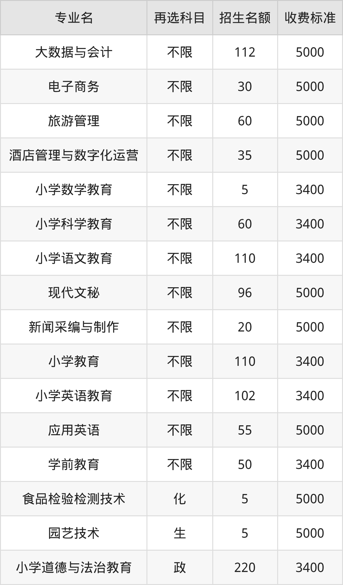 | 高职专科批 | 历史 | 园艺技术 | 5 |