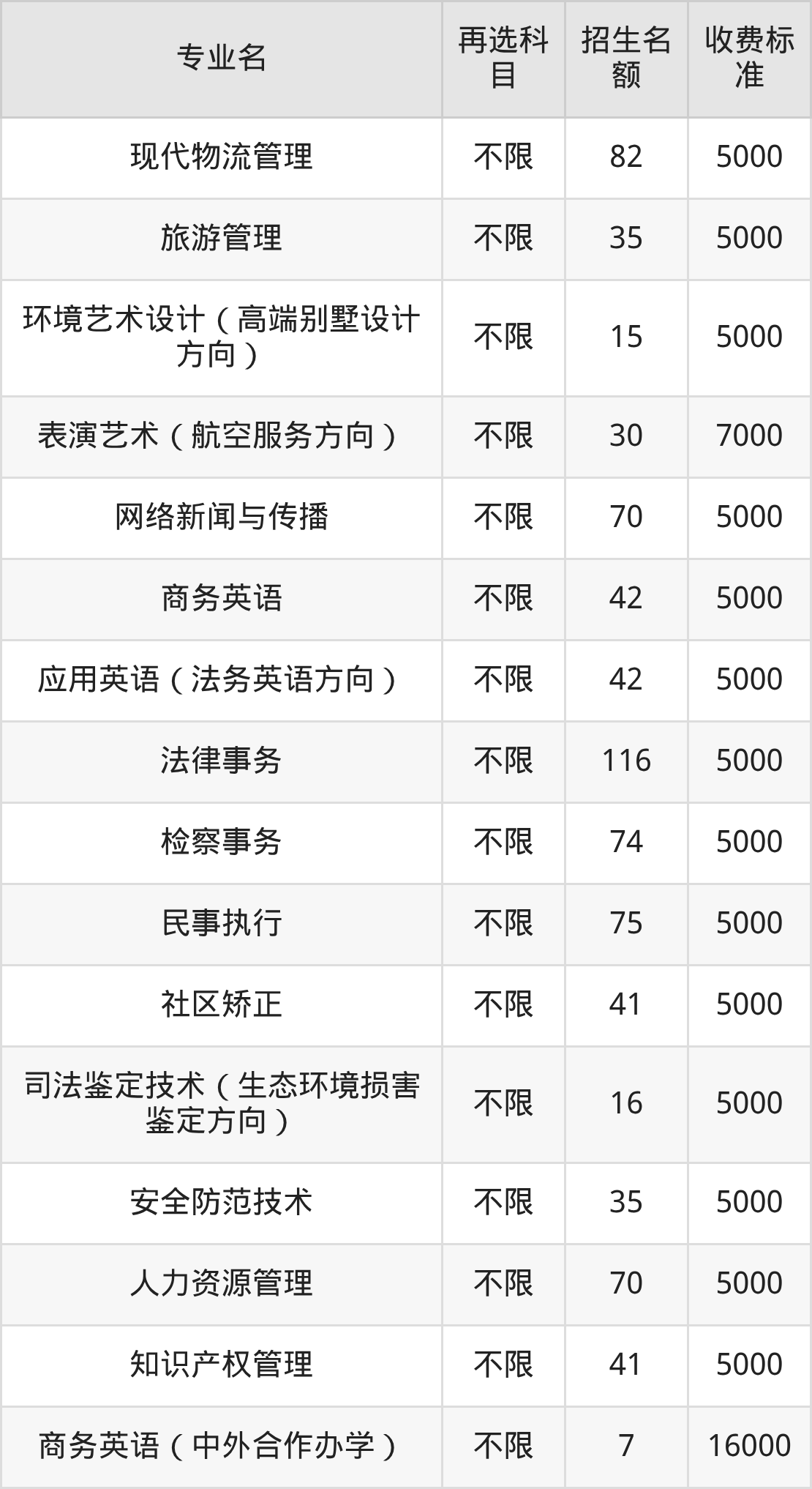 附河北政法职业学院在河北省招生时,各档次学费对应的专业数量、招生总人数!