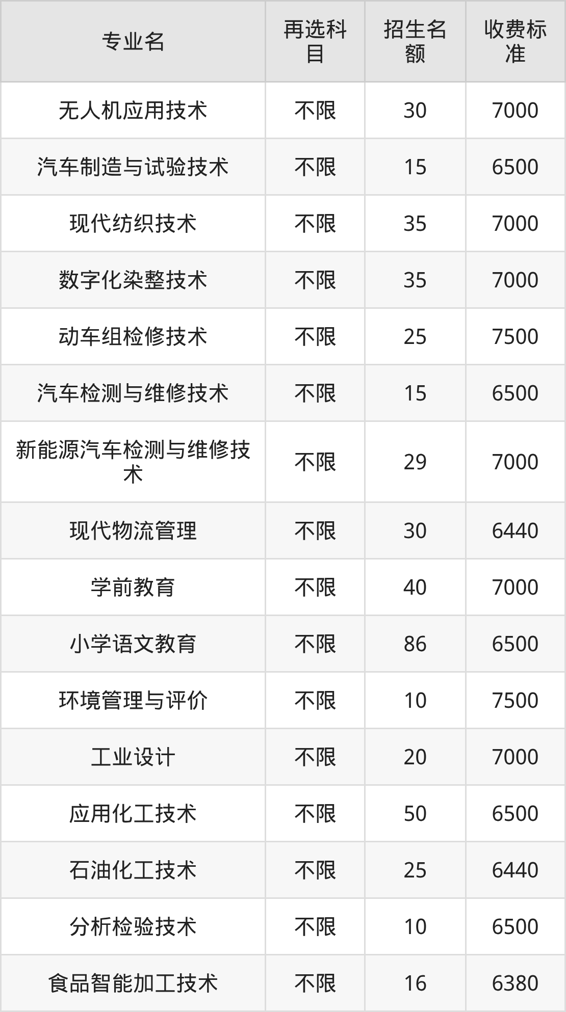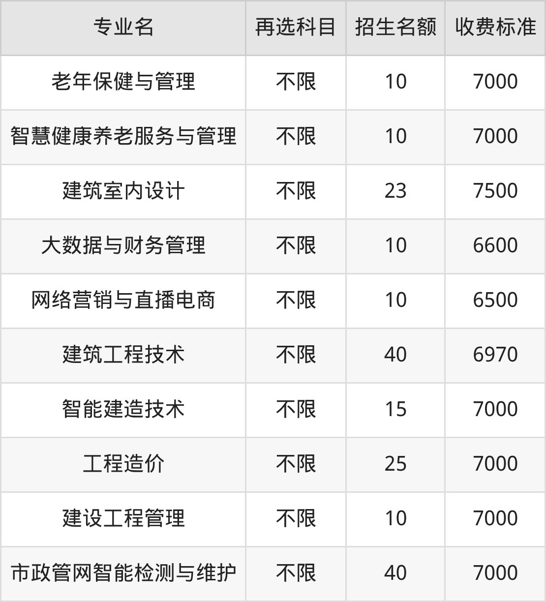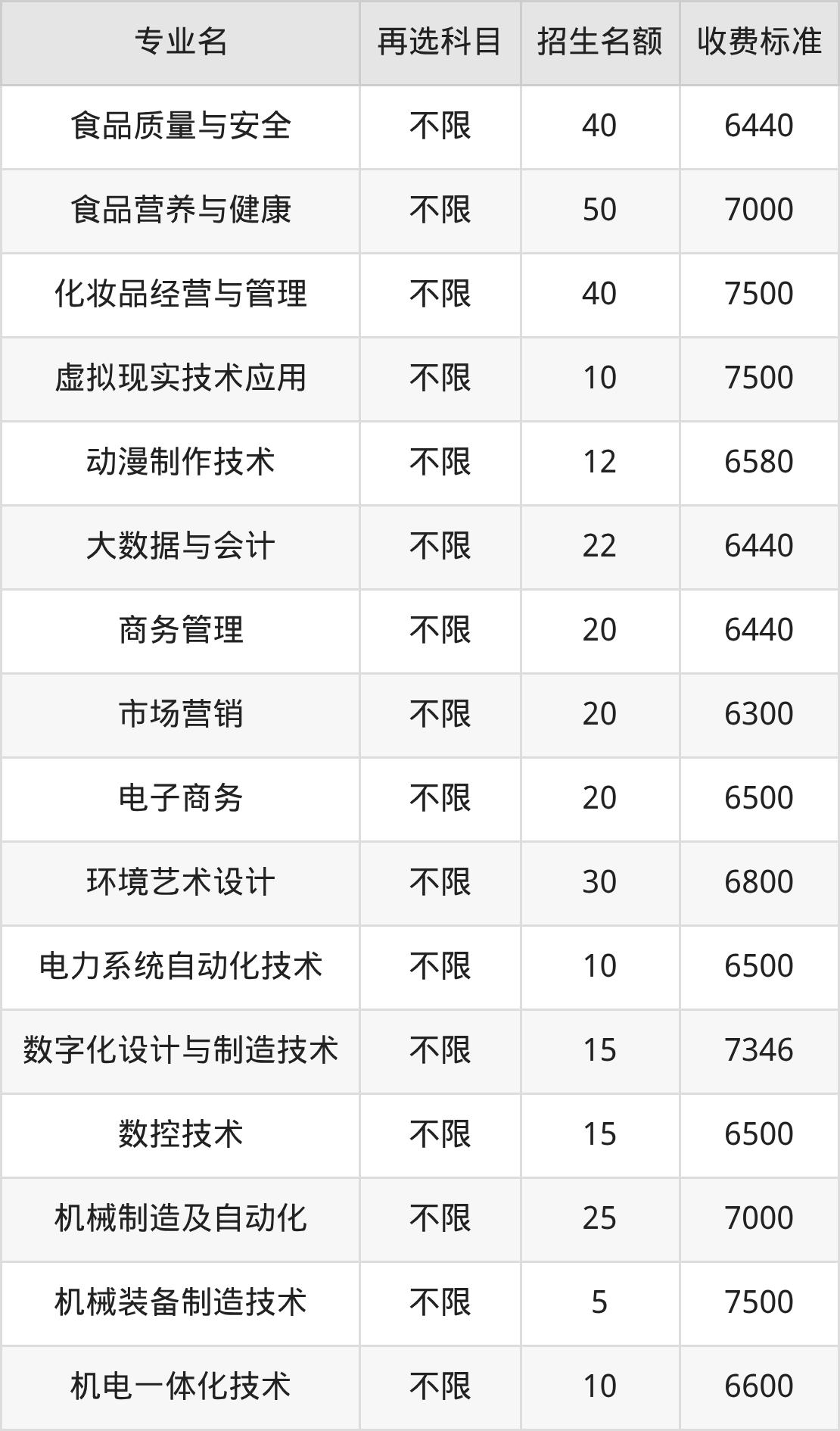 | 高职高专批 | 物理 | 市场营销 | 10 |