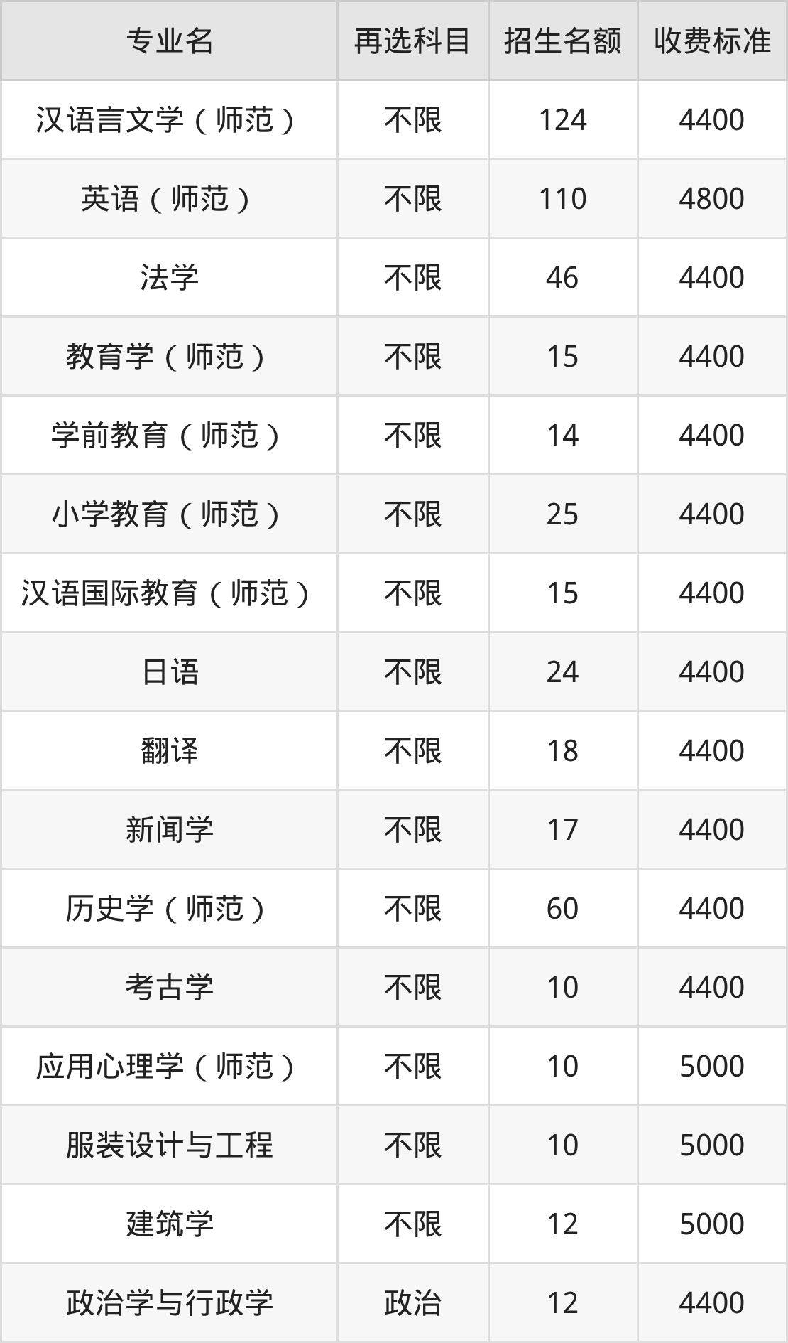11.历史学(师范):学费是4400元