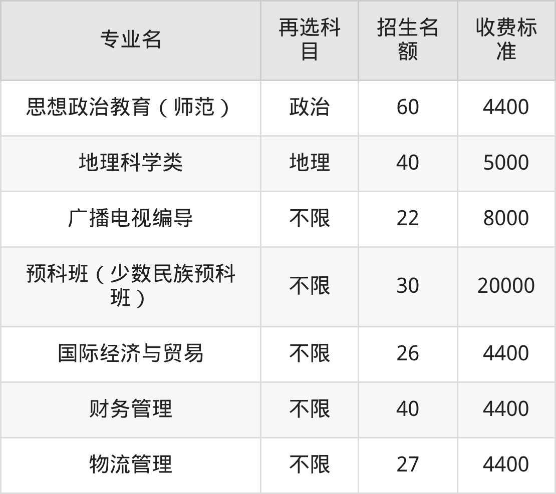 41.预科班(少数民族预科班):学费是20000元